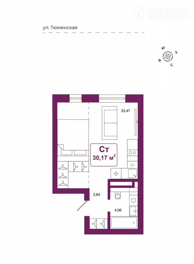 Общая площадь 30.2 м2