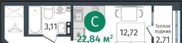 Общая площадь 22.8 м2