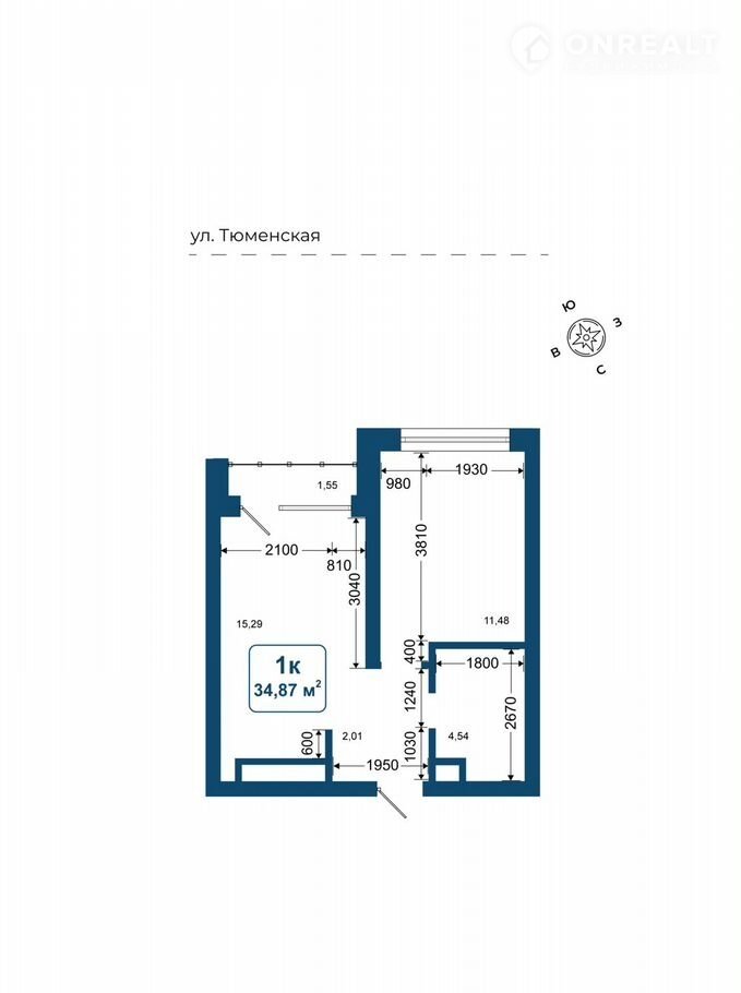 Общая площадь 34.9 м2