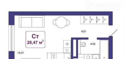 Общая площадь 28.5 м2