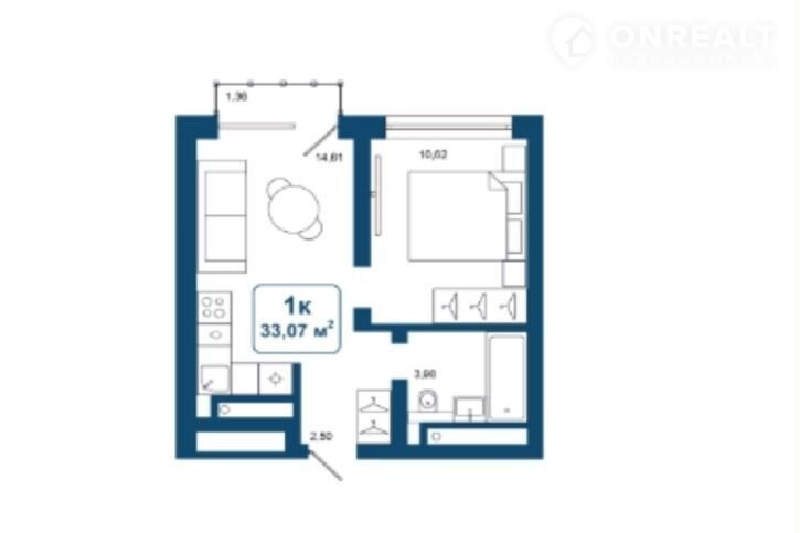 Общая площадь 33.1 м2