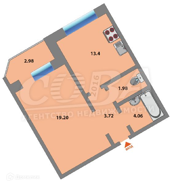 Общая площадь 43.6 м2