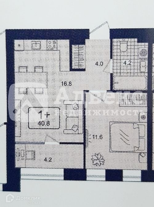 Общая площадь 40.4 м2