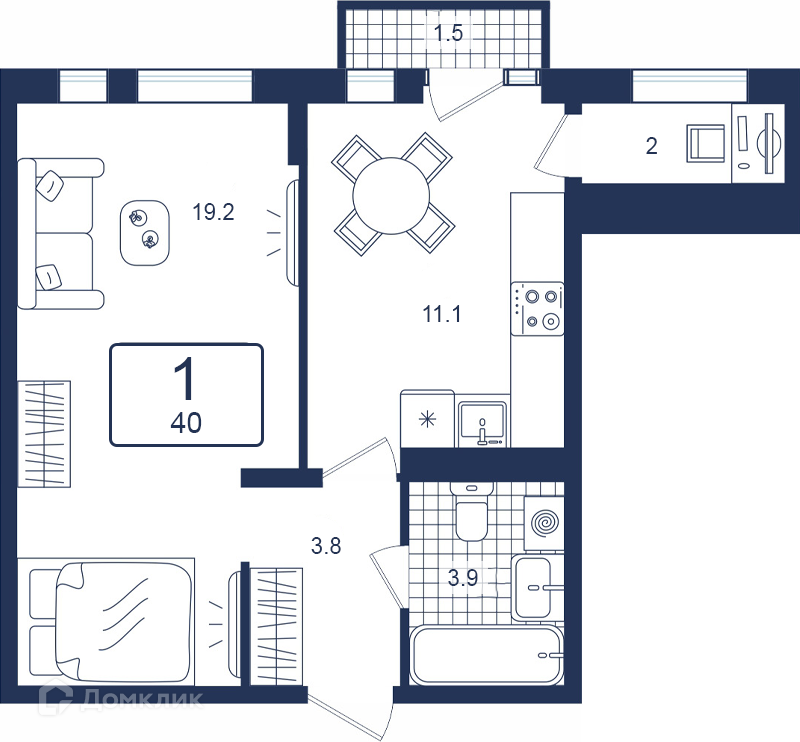 Общая площадь 40 м2