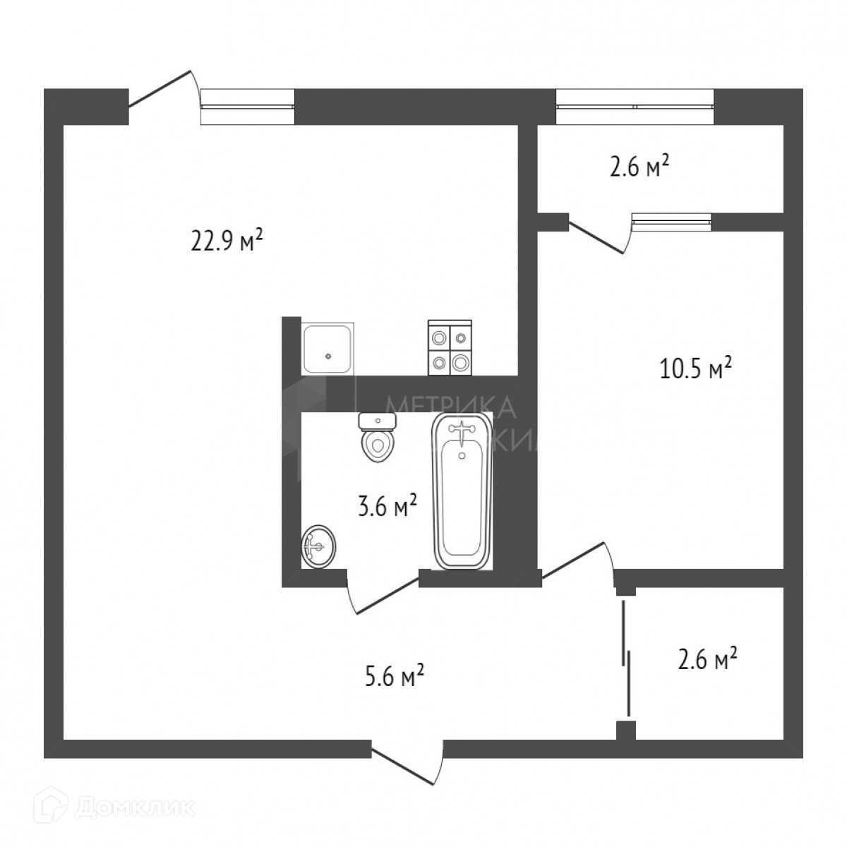 Общая площадь 48.5 м2