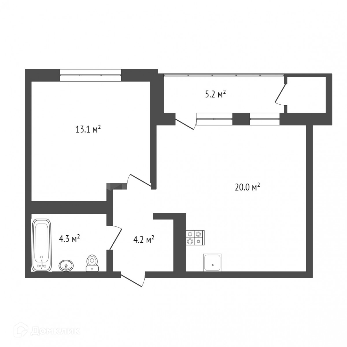 Общая площадь 42.4 м2