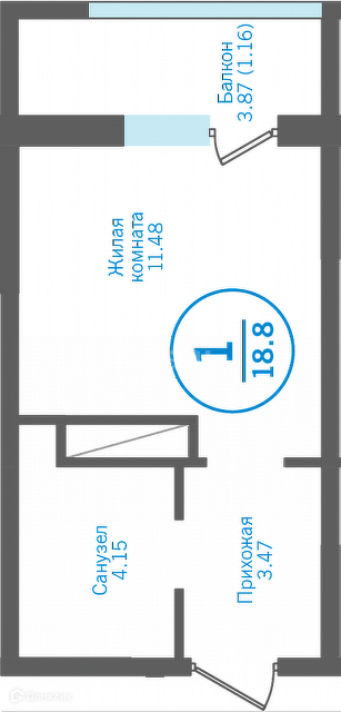 Общая площадь 19.1 м2