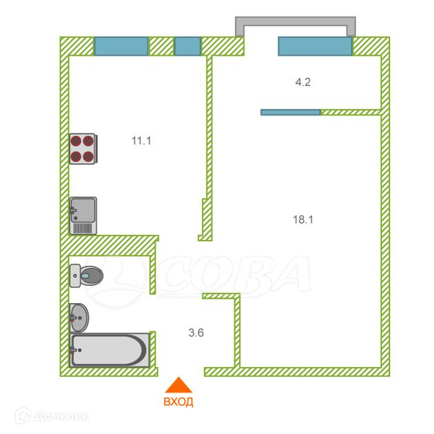 Площадь кухни 11.1 м2
