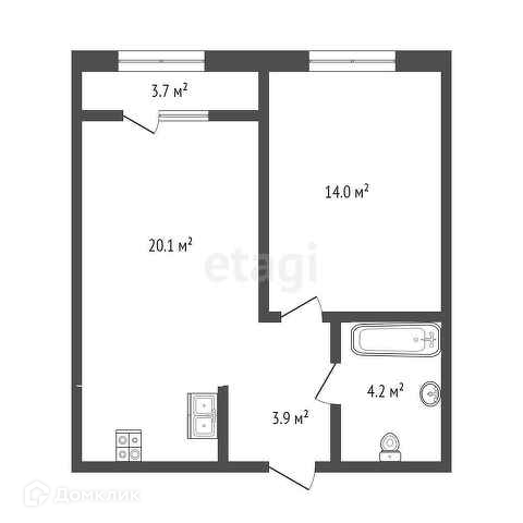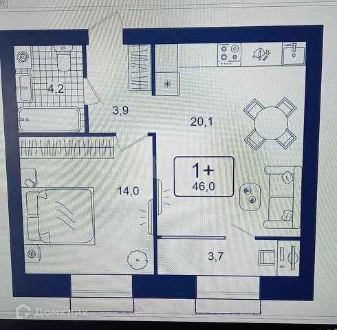 Общая площадь 46.1 м2
