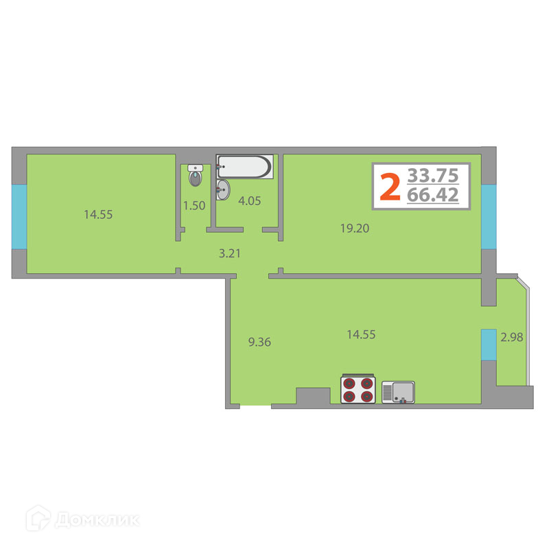 Общая площадь 66 м2