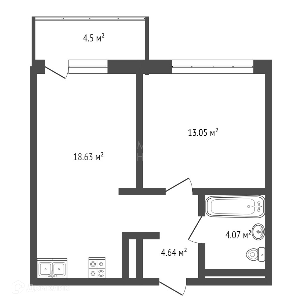 Общая площадь 41 м2