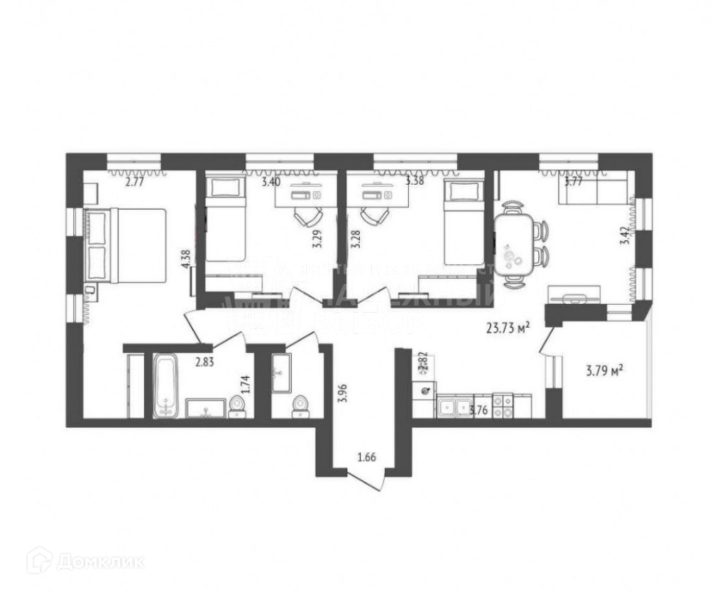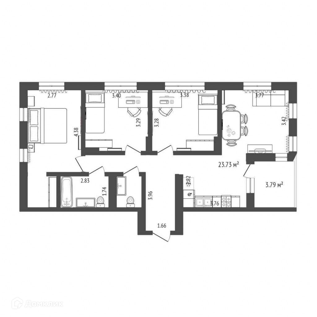 Общая площадь 76.9 м2