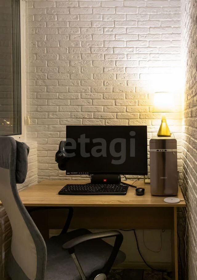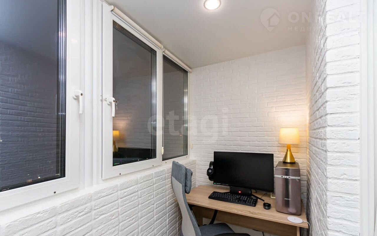 Застекленный теплый балкон, обустроенный под рабочий кабинет, станет идеальным местом для продуктивной работы или расслабляющего отдыха.
