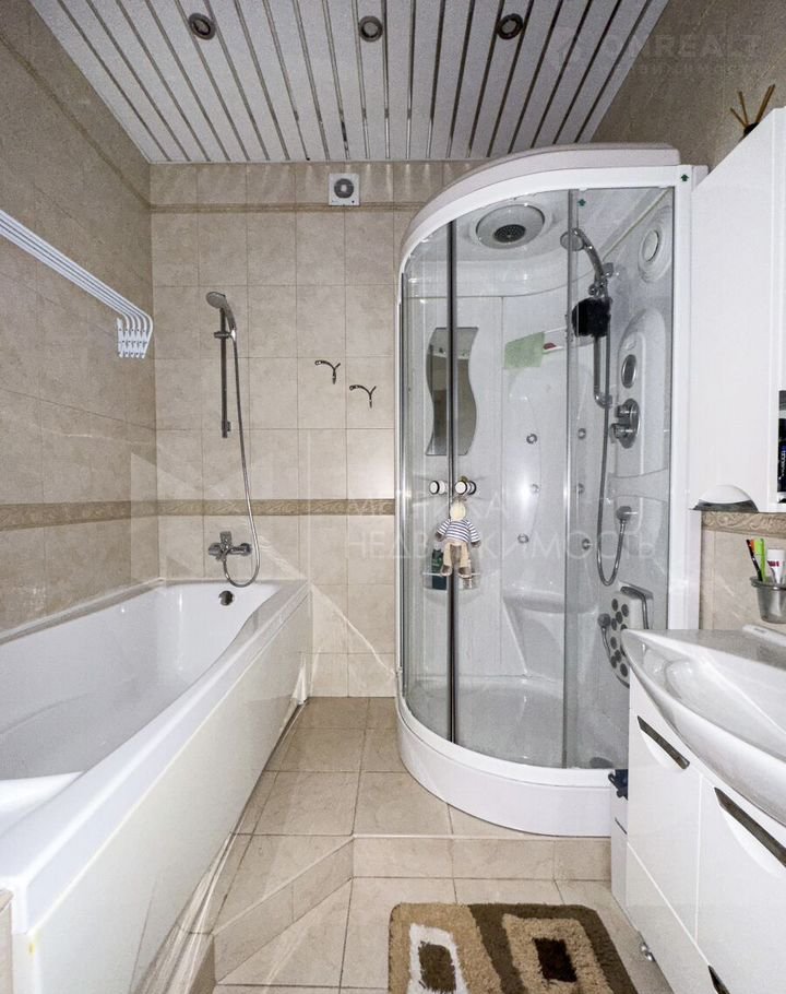Полы в ванной и в санузле с подогревом обеспечат вам тепло и комфорт даже в самые холодные дни. Потолки выполнены из гипсокартона, стены украшены качественными обоями. Сплит-система Хитачи.