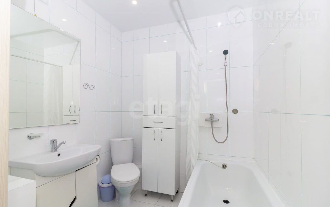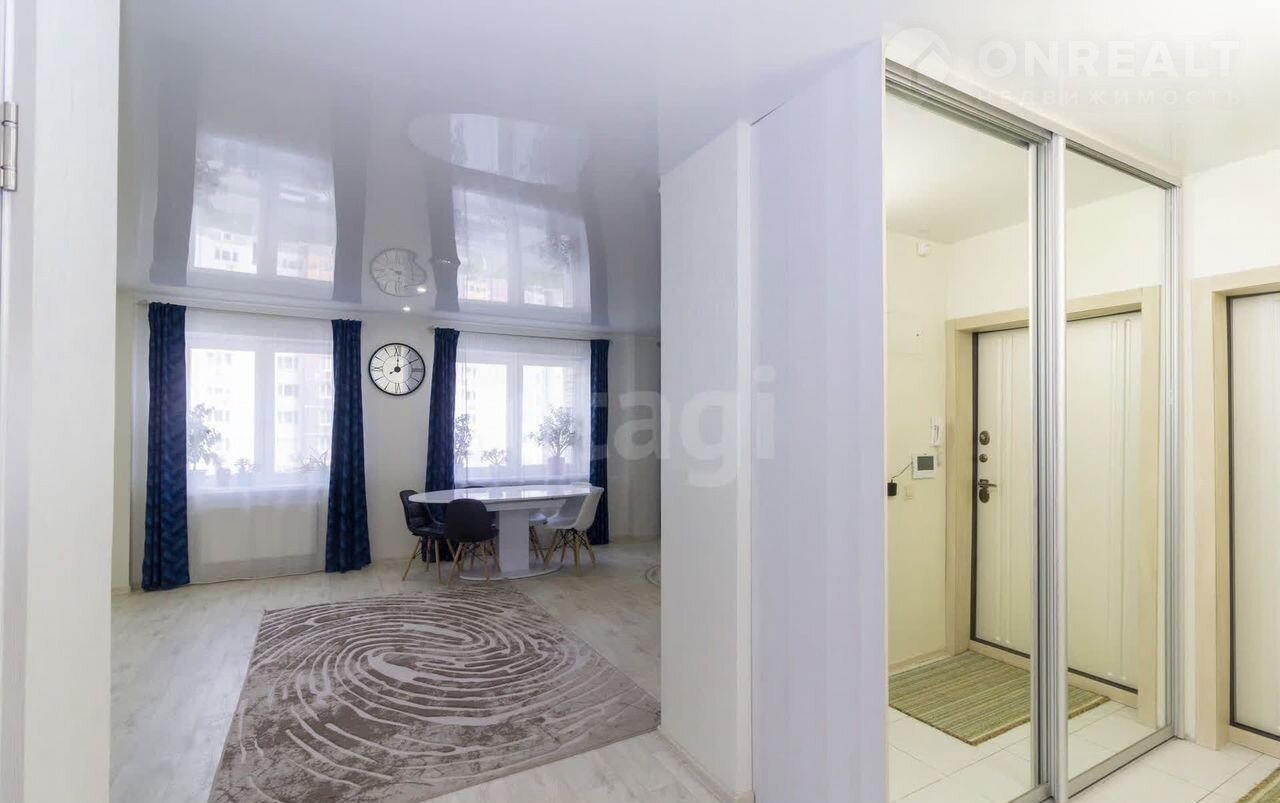 При входе расположен просторный шкаф-купе для верхней одежды. Основное пространство объединяет гостиную и кухню-столовую с двумя большими окнами. Кухонный гарнитур оснащен многочисленными системами хранения, варочной панелью, духовым шкафом и мощной вытяжкой. Здесь же находится вместительный шкаф-купе со встроенной нишей для телевизора. Вторая комната меньше по площади, но функционально организована и имеет выход на утепленную лоджию с дополнительными местами для хранения. Санузел совмещенный, установлена качественная сантехника, отдельное помещение отведено под прачечную зону. Во всей квартире установлены системы очистки воды.