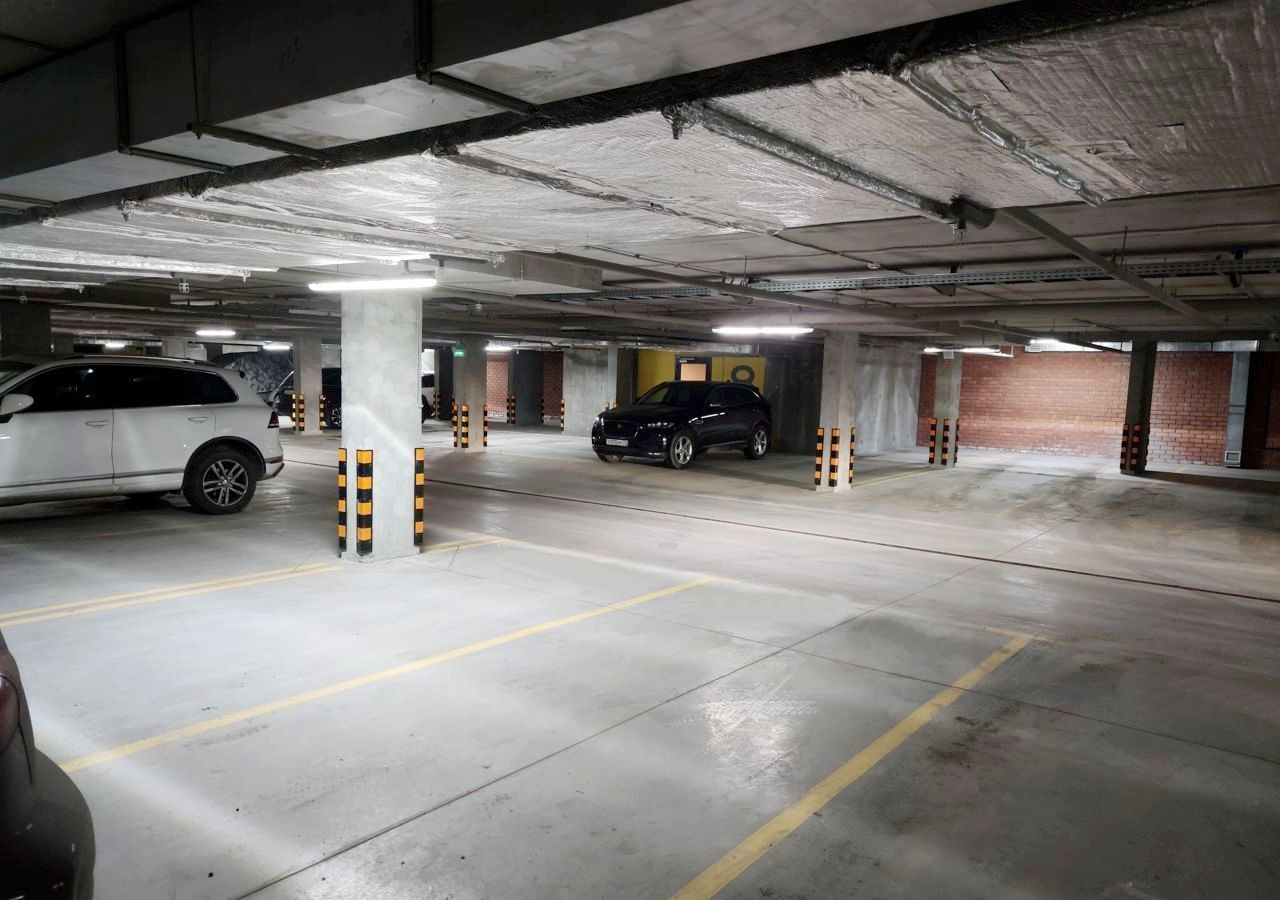 Машиноместо в подземном паркинге (в продаже также прилегающее соседнее машино-место). Паркинг: отапливаемый, оборудован противопожарной сигнализацией, системой пожаротушения, вентиляцией. Паркинг находится в доме.