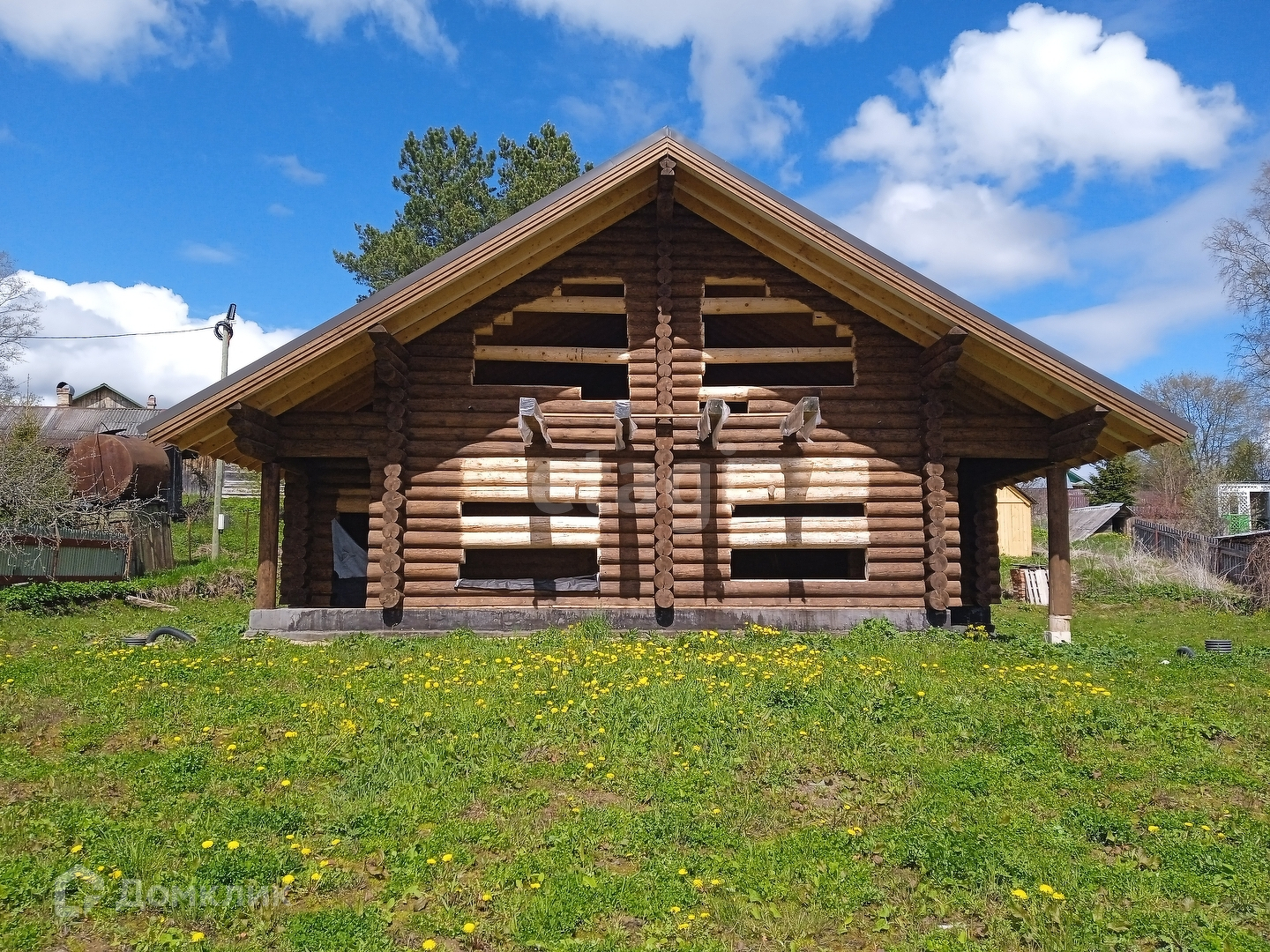 Фундамент свайно-ростверковый, использовался зимний лес, бревно толстое 27-30см. Второй этаж застелен доской на 40мм. Стропиловка на 200мм. Кровля металлочерепица. Мембрана одна из самых дорогих-Tyvek, снаружи дом обработан защитно декоративным составом Sikkens. По периметру участка ливневка с отводом в реку. Участок не топит, проверено! На участке опора с электричеством 380В (точка подключена), на столбе прожектор очень яркий. Забор с двух сторон. Подъезд круглогодичный.