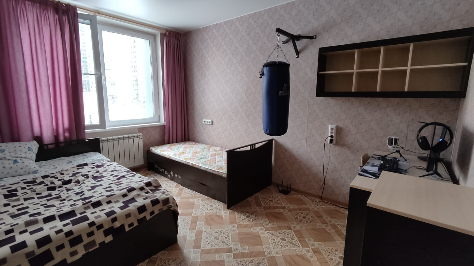 Выполнен косметический ремонт. Напольное покрытие линолеум, стены оклеены обоями. Квартира тёплая, светлая и просторная.