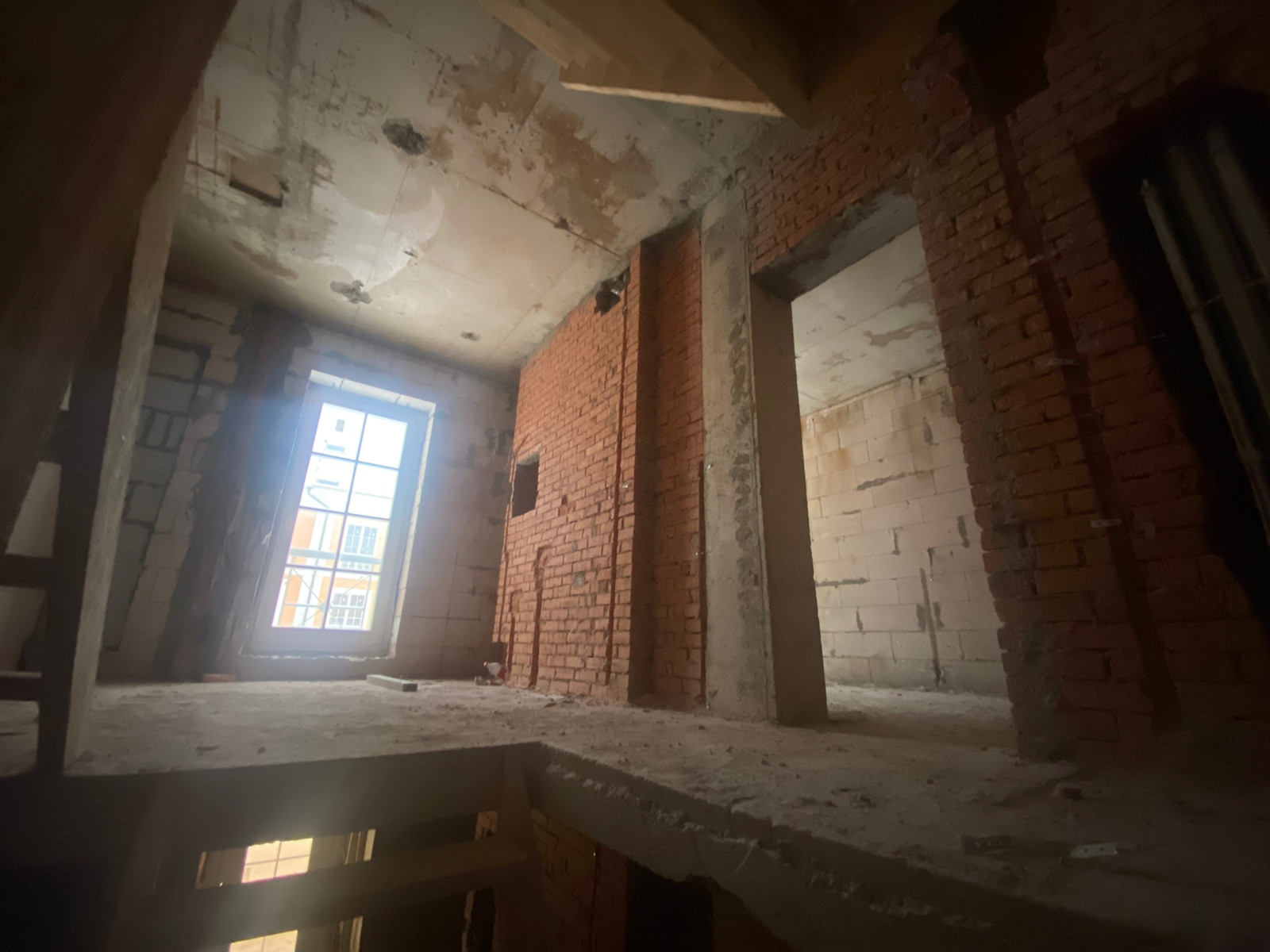 3 этажа, центральное водоснабжение, магистральный газ. Построены межкомнатные перегородки, есть место под камин.