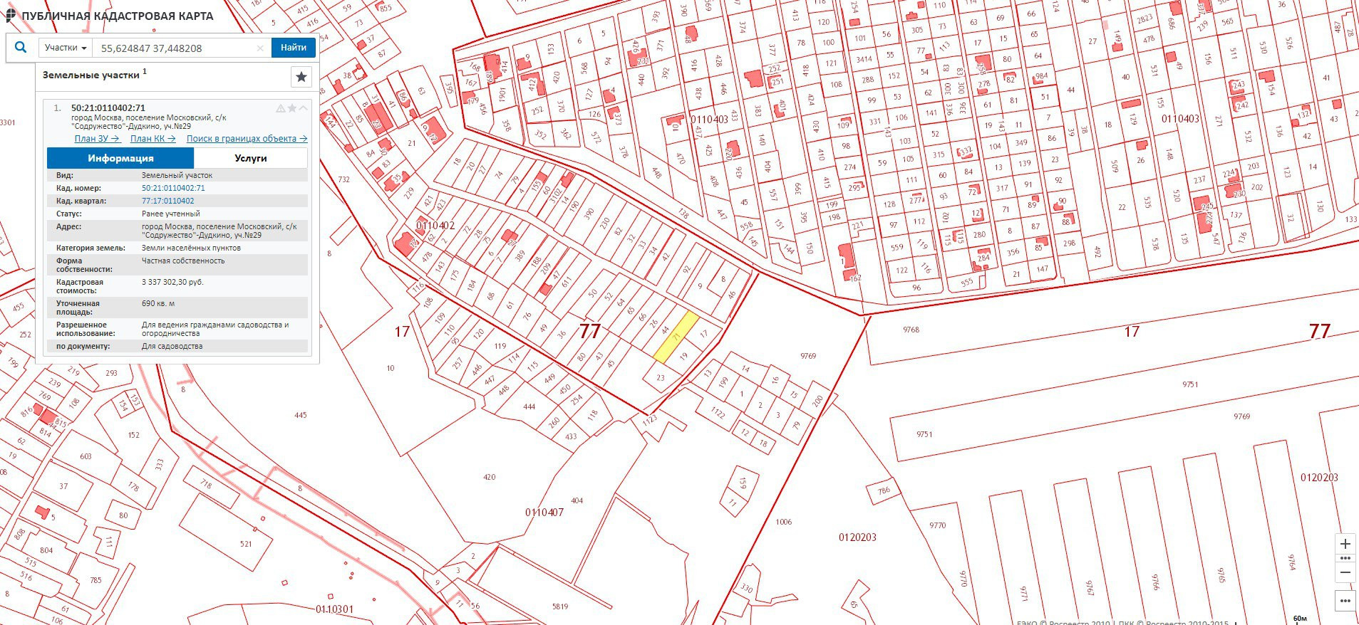 Москва, внутригородская территория поселение "Мосрентген", квартал № 15, земельный участок 29 (50:21:0110402:71), карта его не находит, на публичной кадастровой карте есть, межевание на участок есть, нет строений. рядом газ и электричество. Рядом метро Румянцево и Саларьево с торговыми центрами.
