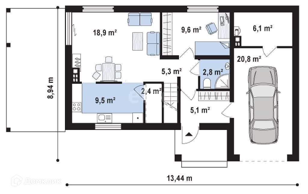 В данной планировке полностью пересмотрено планирование дневной зоны. В данном проекте кухня оказывается частично закрытой, пространственно отделённой от зоны гостиной. У внутренней стены выделено место для столовой, рядом (у внешней стены) устроен камин, который добавляет общему пространству, тепла, уюта и очарования. Ещё одна деталь — в гараже предусмотрено дополнительное помещение. За счёт этого помещения, которое устроено в дальней части гаража, последний оказывается не отдельным блоком как в первом проекте, а образует единую плоскость с дальней стеной дома. Одновременно увеличивается и площадь террасы второго уровня, что во многих случаях представляет интерес для владельцев..Номер в базе: 10074066. Район: Мосрентген п..