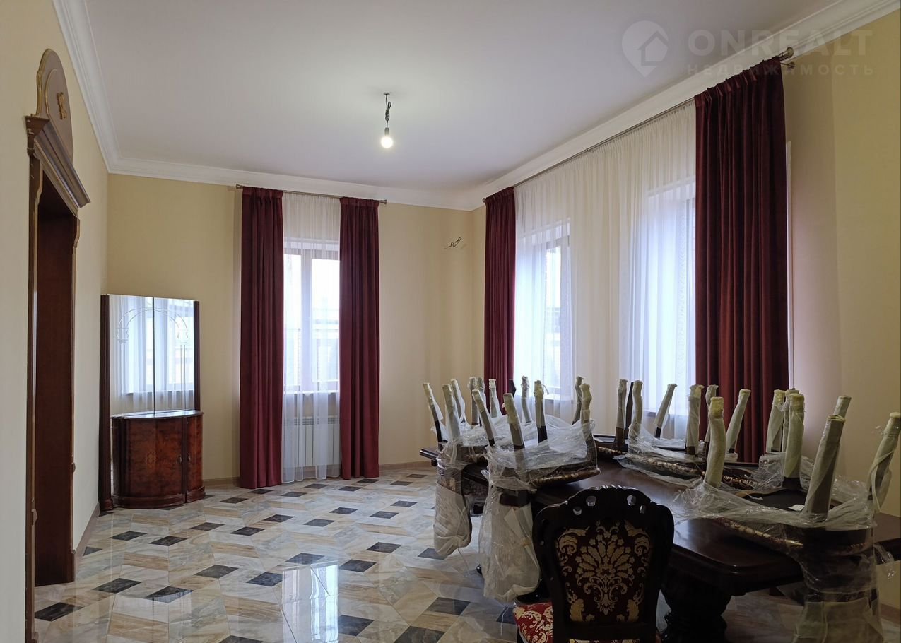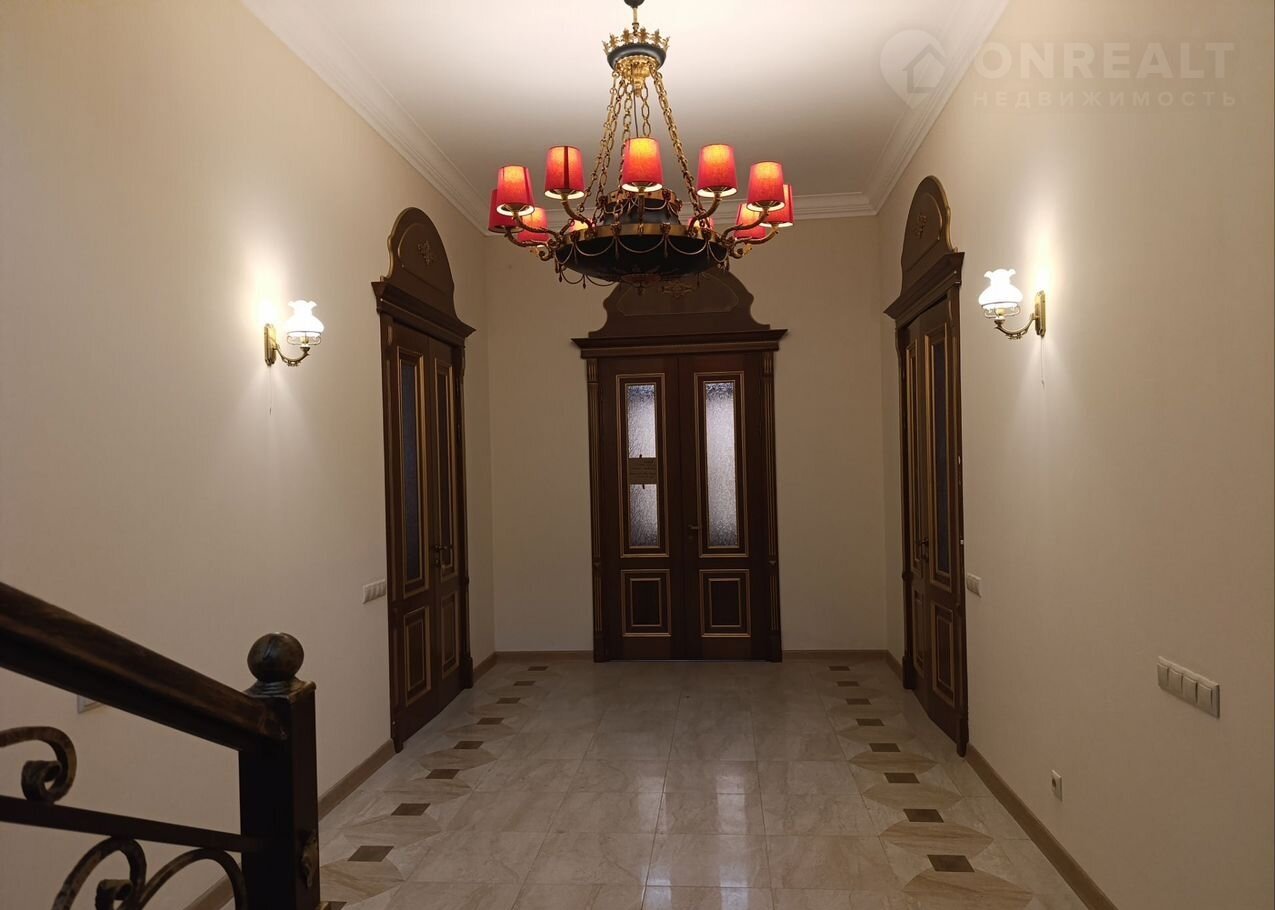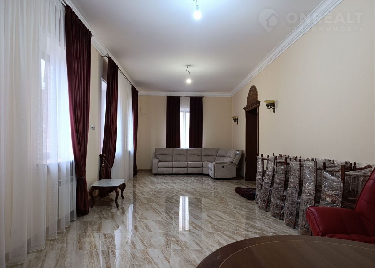При входе через  основную  дверь с улицы,  просторная прихожая  с  лестницей из натурального мрамора, ведущей на второй этаж. На первом этаже слева находится кухня - столовая, справа просторный зал с диваном из слоновой кожи. В конце прихожей расположен просторный санузел. На втором этаже расположены 3 спальни (одна из которых мастер-спальня) и рабочий кабинет. Мебель итальянская из натурального дерева.  Рабочий кабинет с балконом. В доме проведен высокоскоростной интернет.