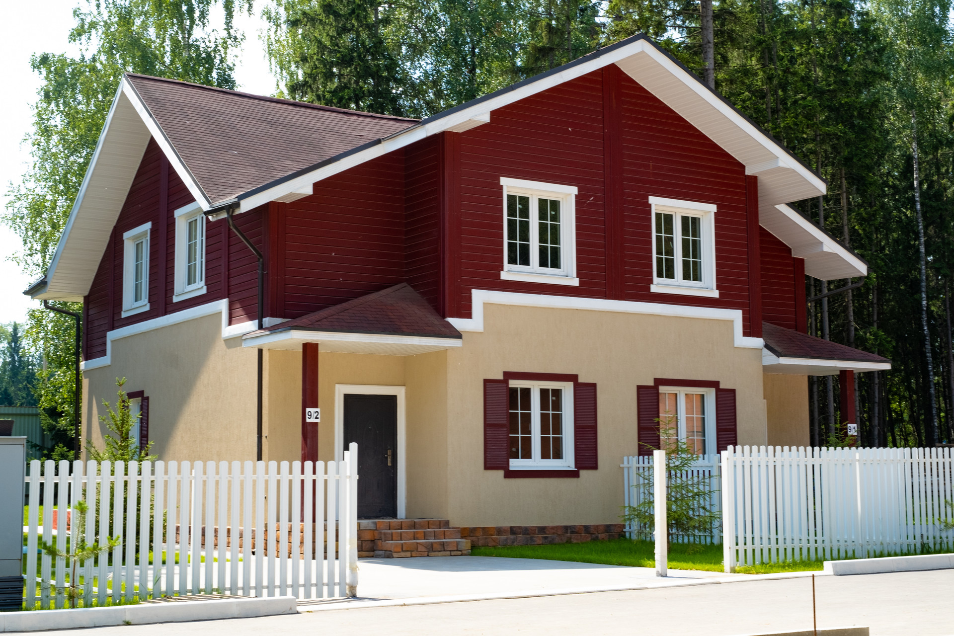 В стоимость входят: заведённые в дом водопровод, канализация septic, электричество 15 кВт; Техусловие на врезку газа (посёлок газифицирован), дренажный колодец; ливневка; оптоволоконный интернет; благоустроенный зеленый участок с газоном, огороженный металлическим штакетником, два парковочных машиноместа, дорожки к дому, отмостки уже с финишной отделкой полимерным бетоном; полная внешняя отделка дома и остекление. Дом построен на монолитном фундаменте, из газосиликатного блока. Фасад выполнен декоративной штукатуркой с покраской, вентилируемые фасады с имитацией бруса. На тёплой кровле использована итальянская мягкая черепица с гарантированным сроком службы 25 лет, с водосточной системой. При остеклении применены энергоэффективные, двойные стеклопакеты VEKO и REHAU.
