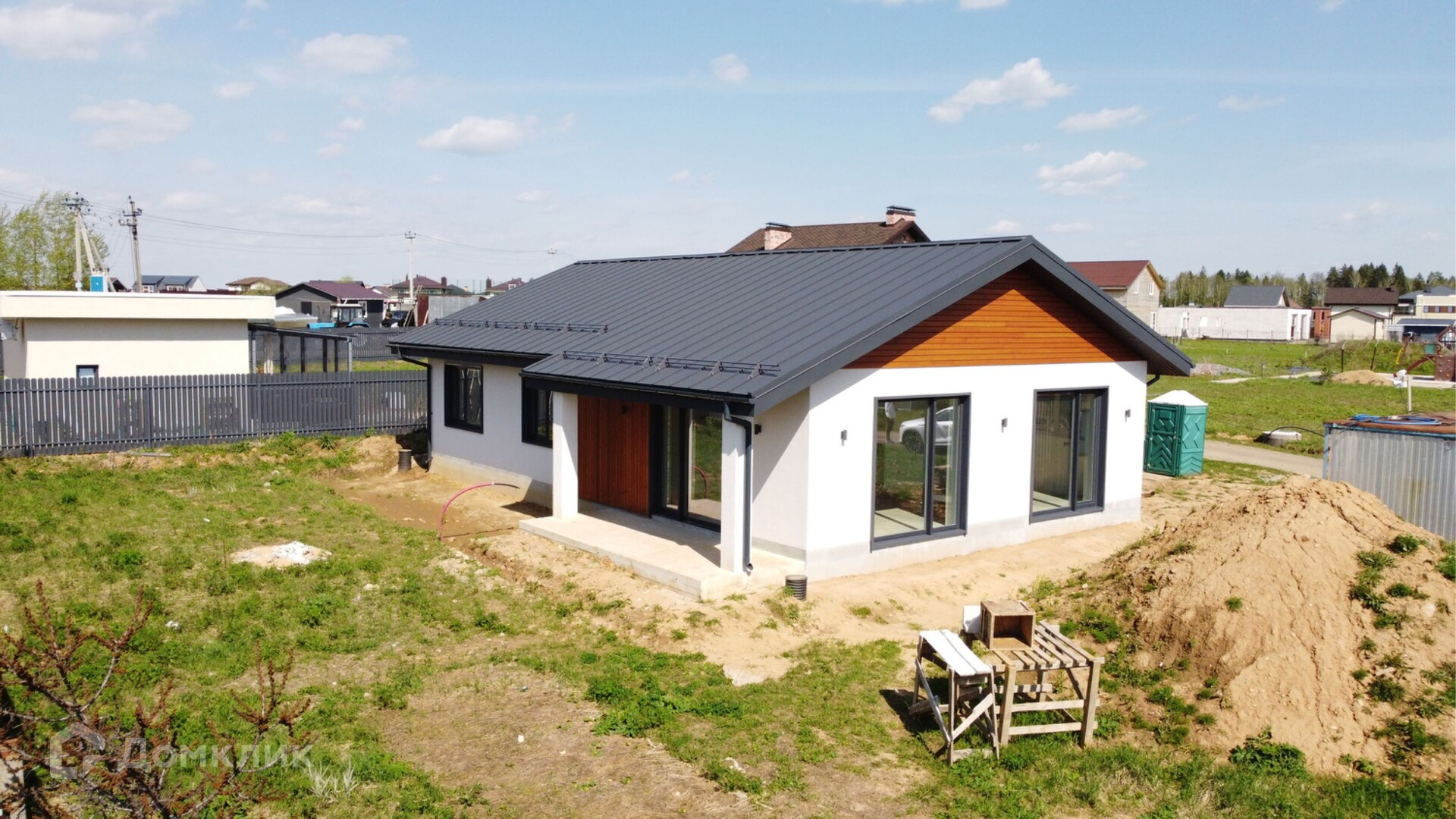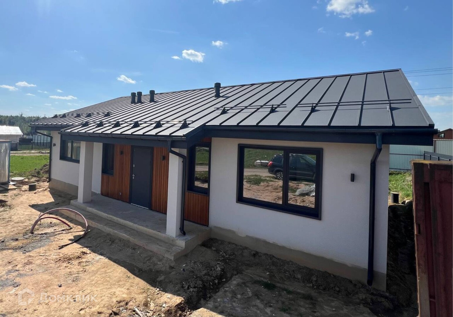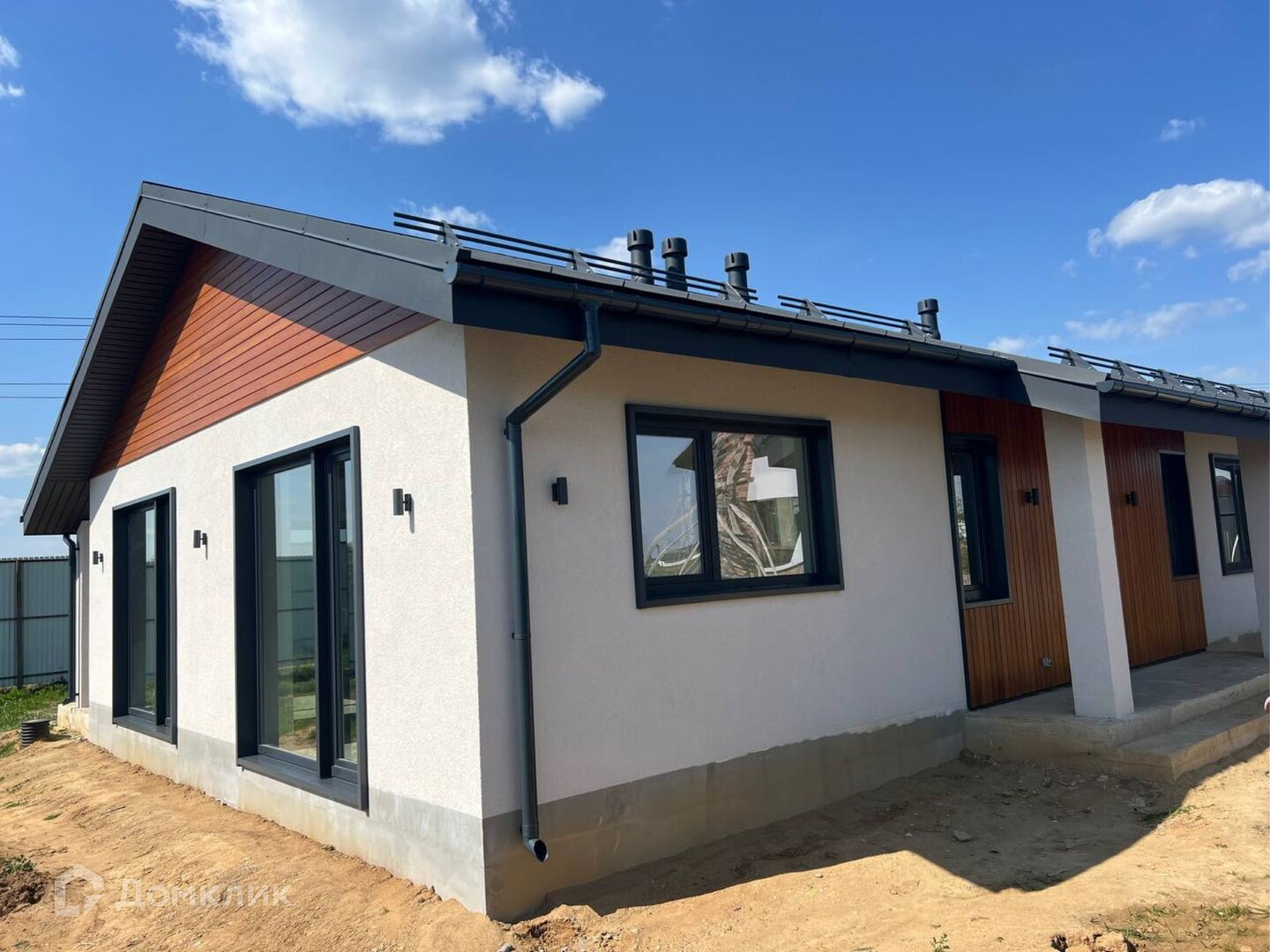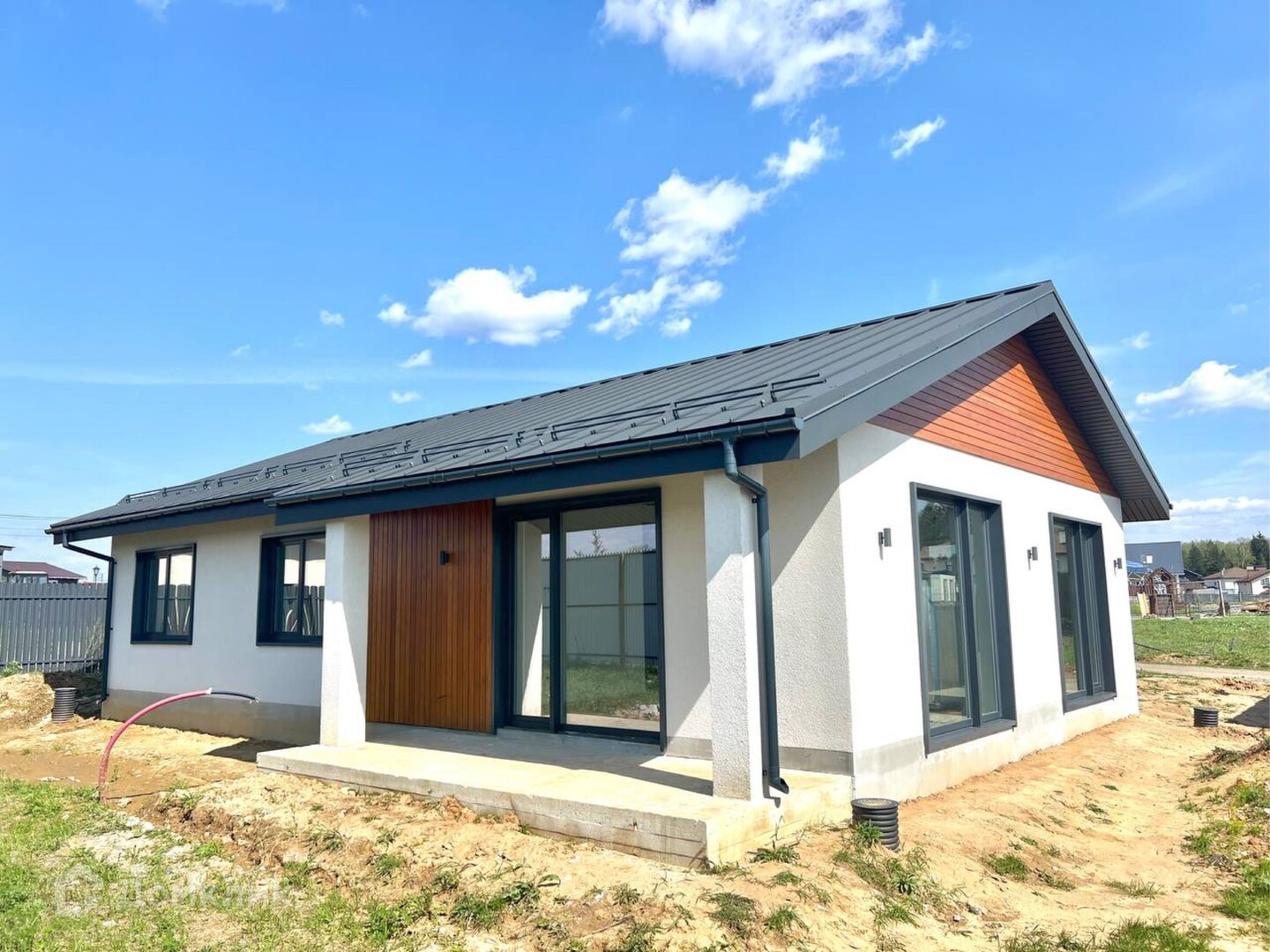 В доме выполнена пред чистовая отделка, большая зона остекления даёт ощущение большого пространства и позволяет дому быть постоянно светлым внутри.
