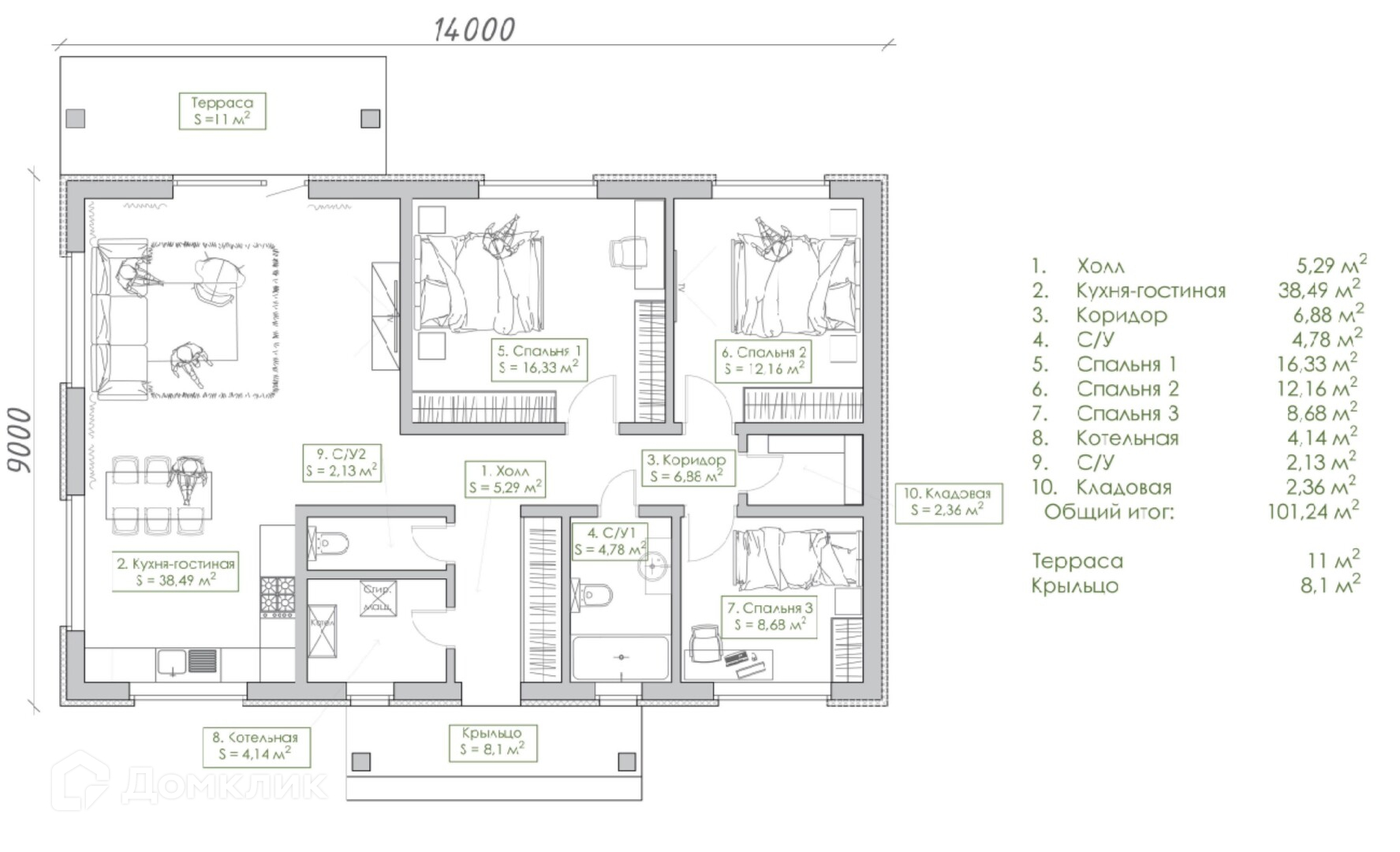 Общая площадь 130 м2