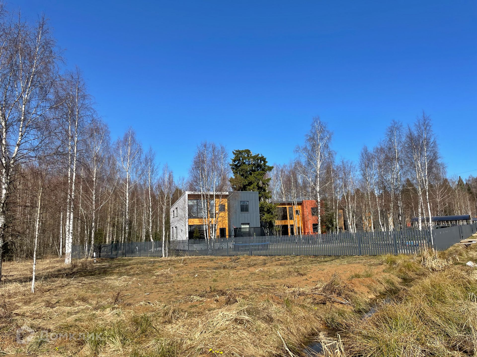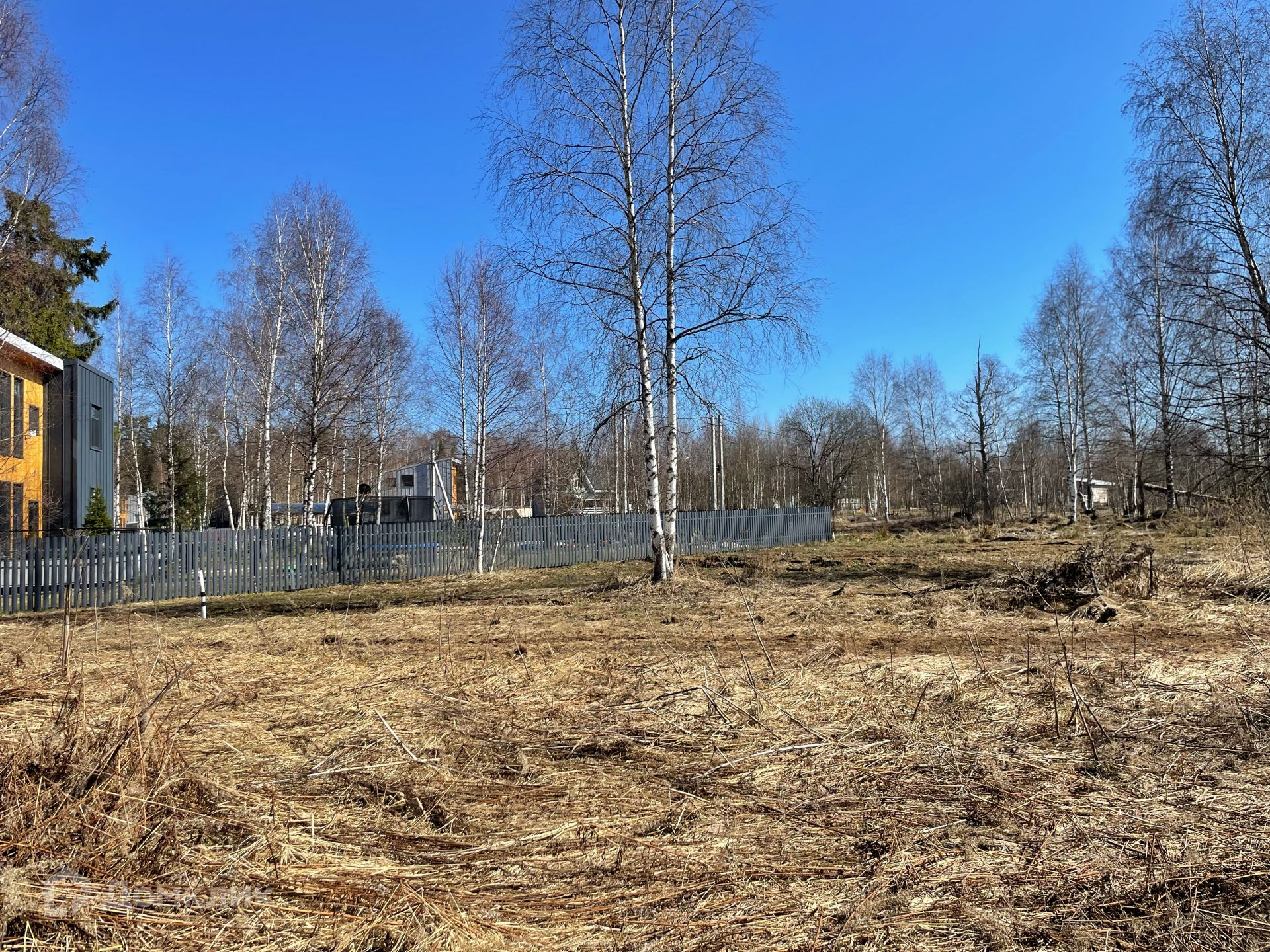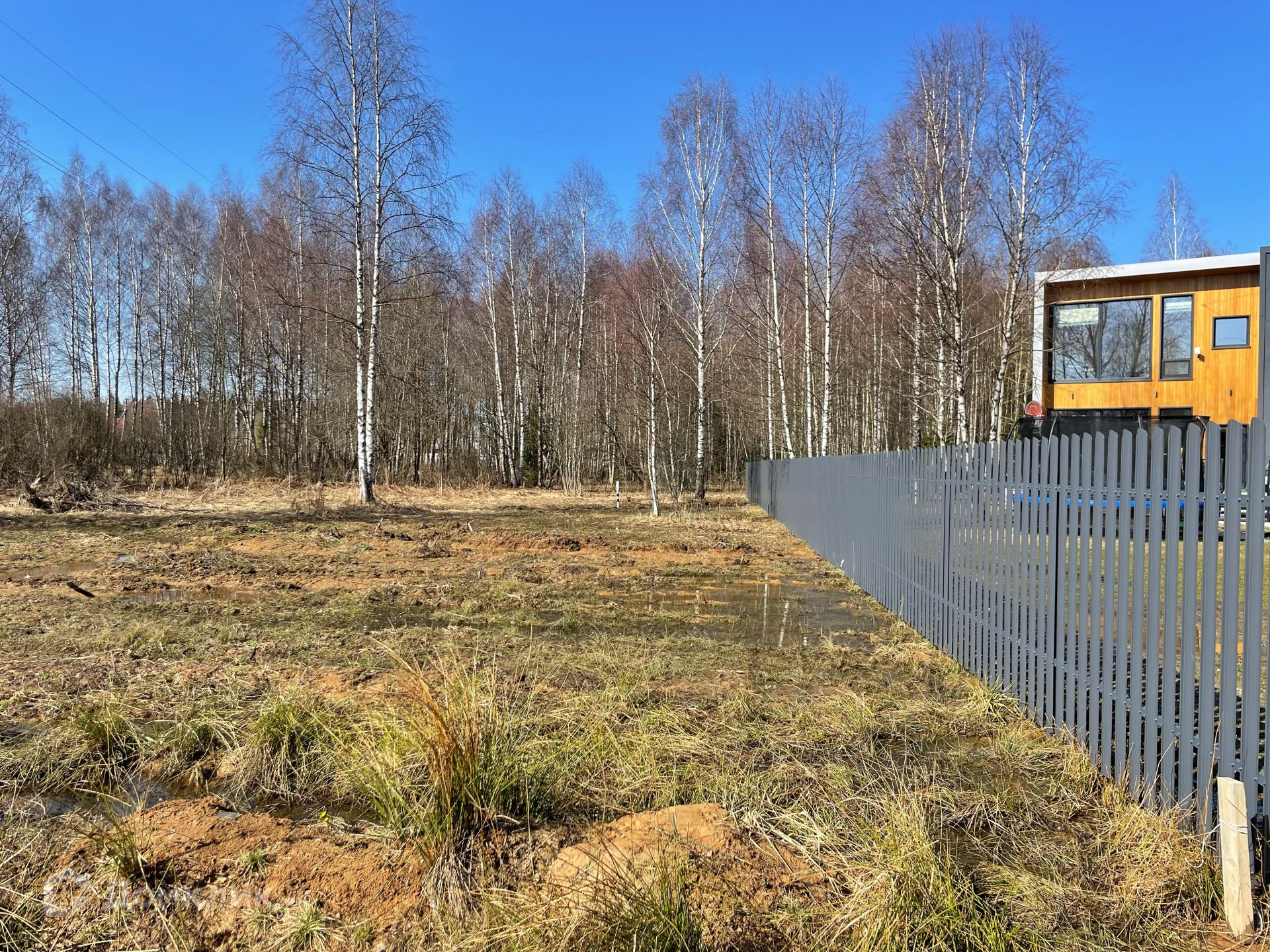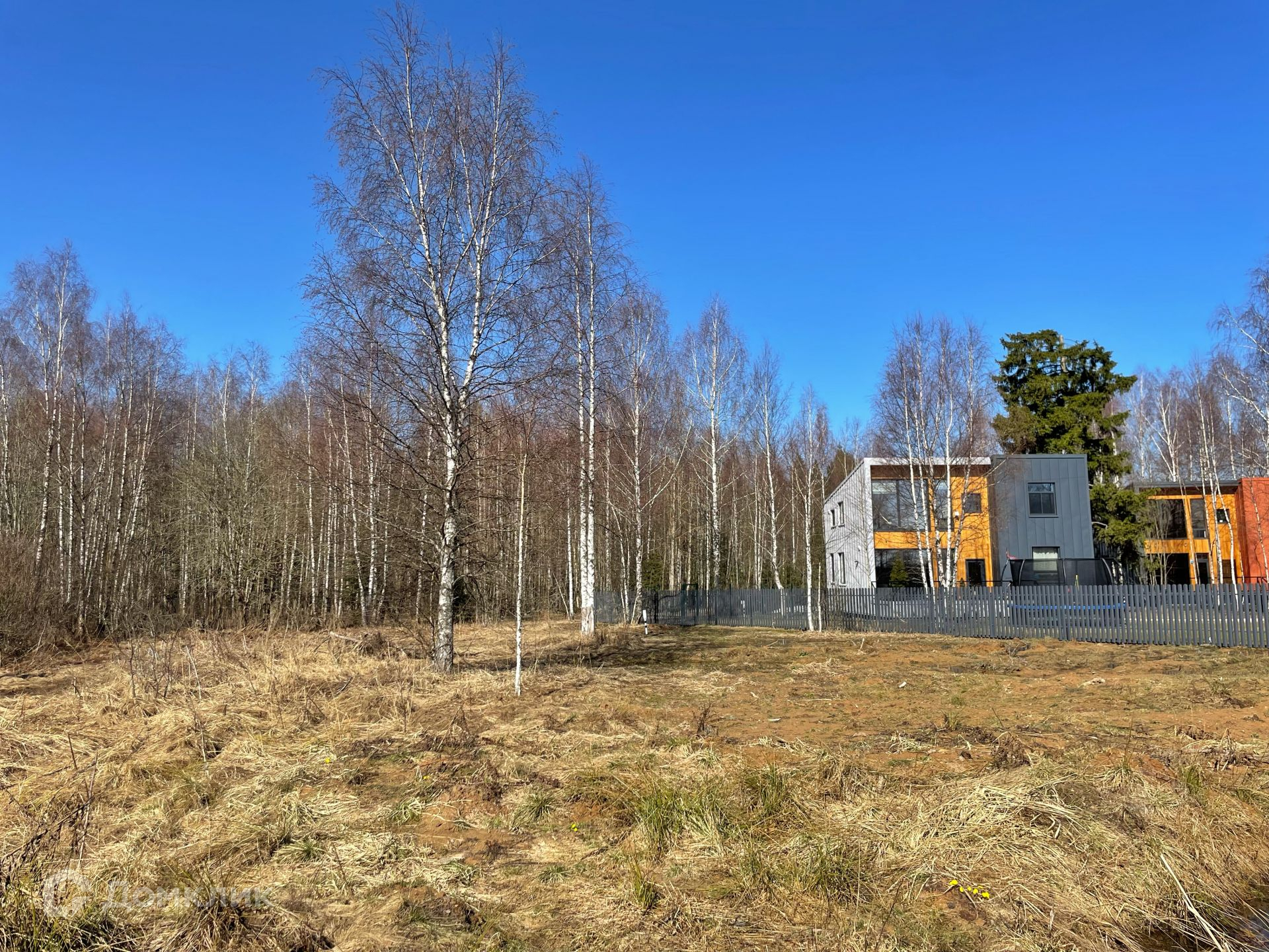 Участок ровный, правильный прямоугольник, на территории есть несколько взрослых деревьев, свой выход в лес. Обременений нет. При въезде в посёлок шлагбаум, на дорогах асфальтовая крошка. Газопровод проходит по границе посёлка, по мере застройки есть перспектива подключения.