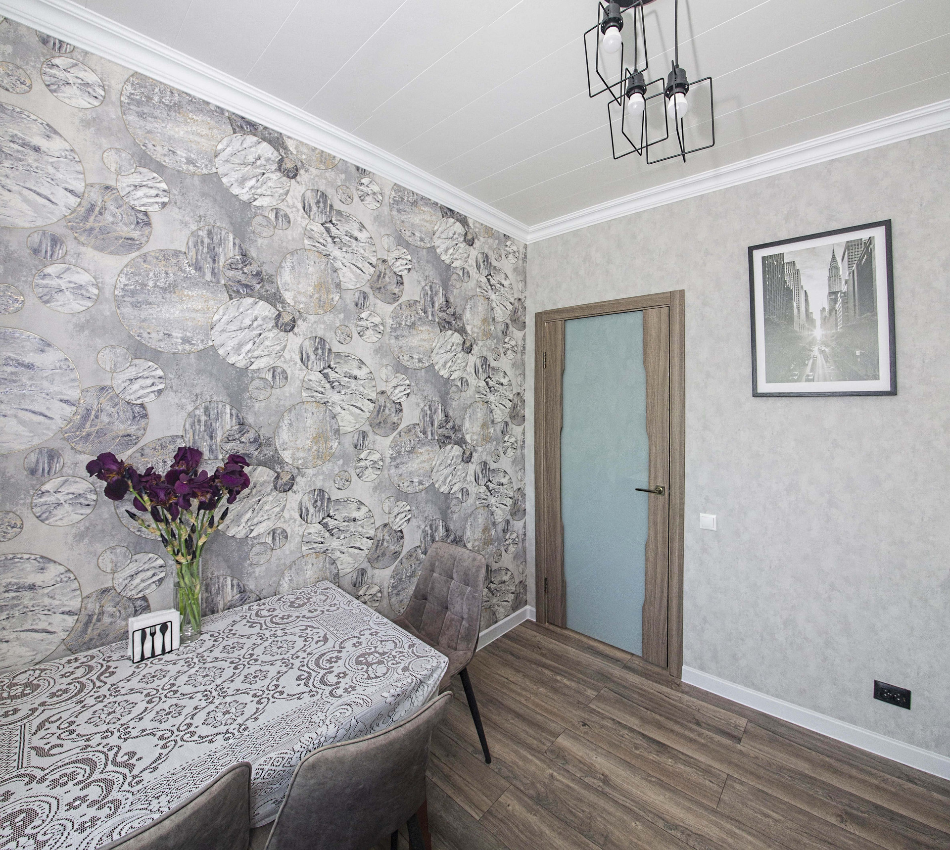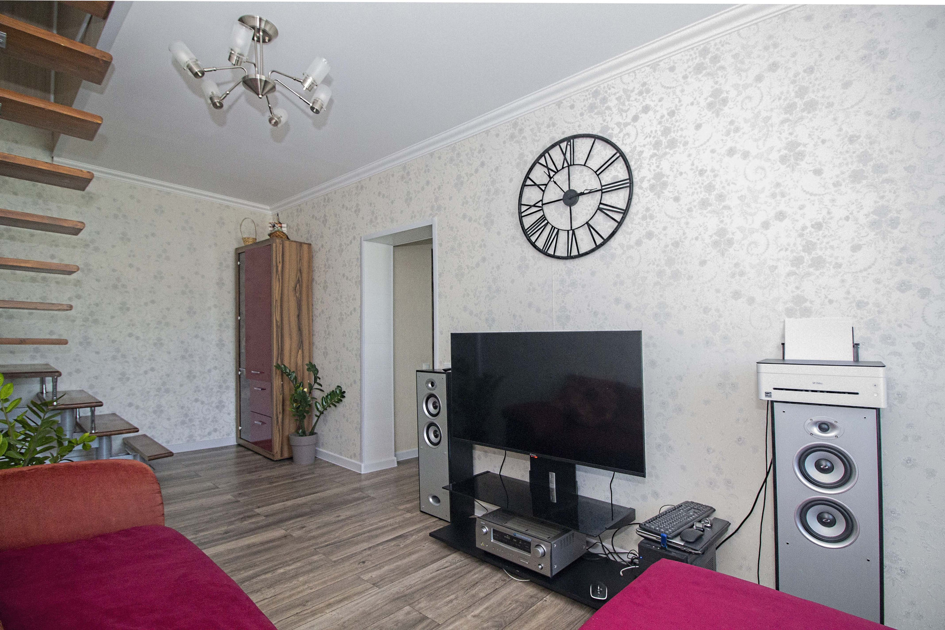 Остается кухонный гарнитур с встроенной индукционной варочной панелью, диван и шкаф в зале, мебель в санузлах.