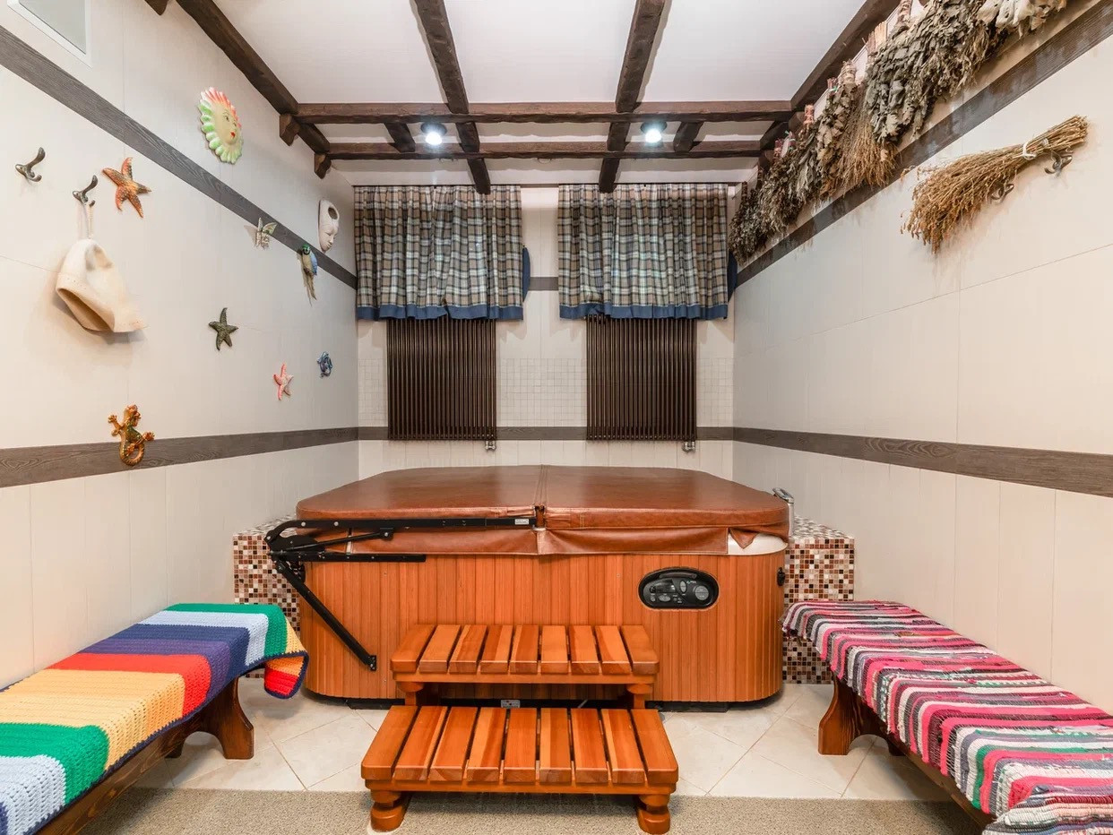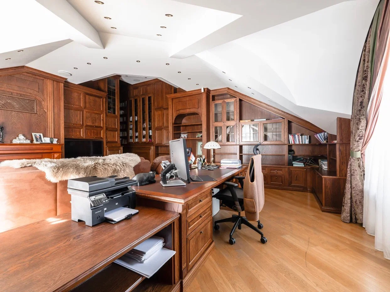 Дом оборудован системой умный дом с дистанционным управлением, укомплектован дорогой техникой от элитных производителей и мебелью по индивидуальному заказу, полностью готов к проживанию. В отделке использованы экологически чистые, дорогостоящие материалы, лучших европейских производителей. Дом построен в классическом стиле, с цокольным этажом, мансардой, несколькими балконами, на одном из которых зона отдыха и барбекю. В доме обустроен банный комплекс с сауной, хамамом, джакузи и обширной комнатой отдыха со своей кухней, каминным залом и массажным кабинетом.
