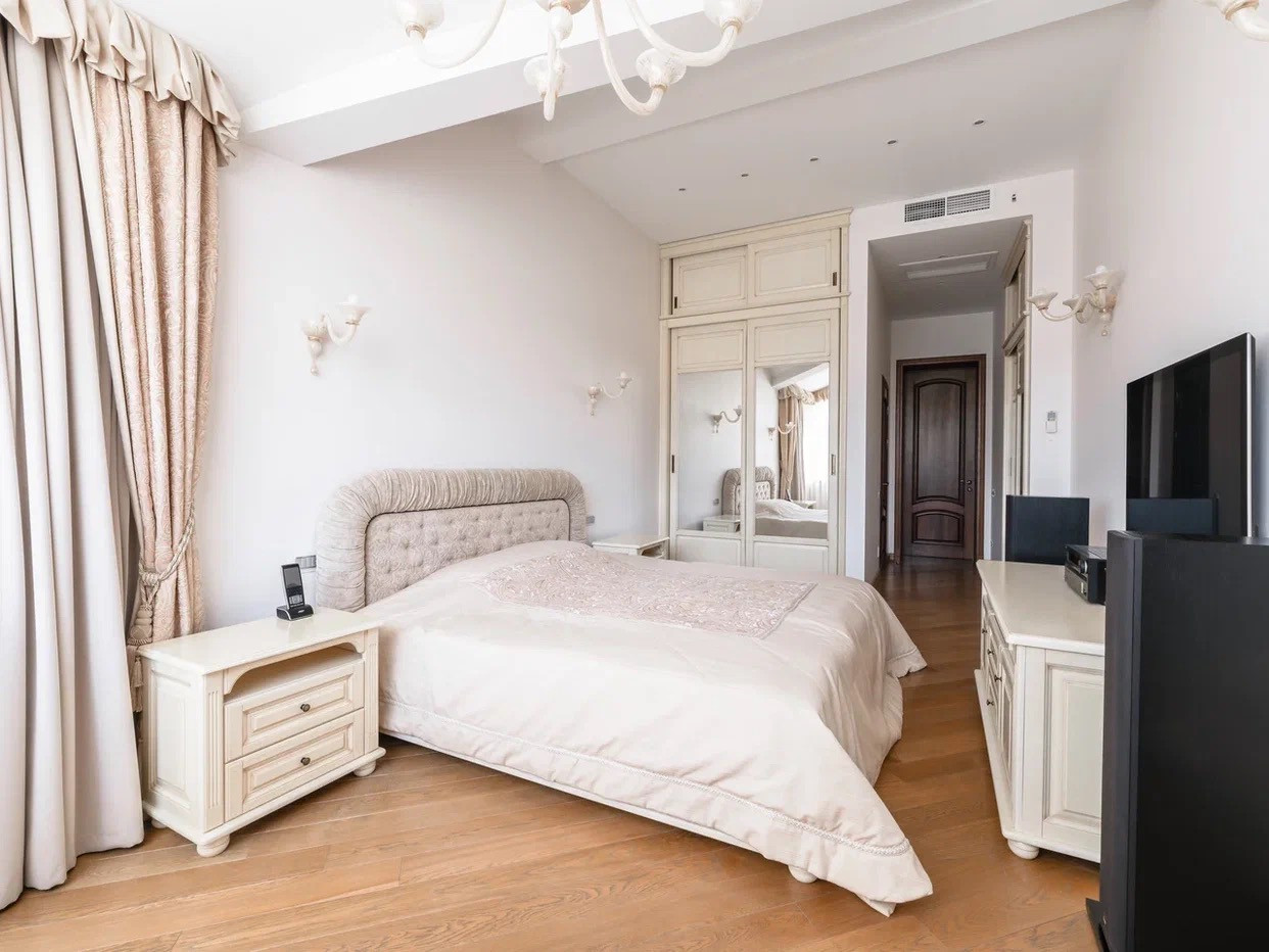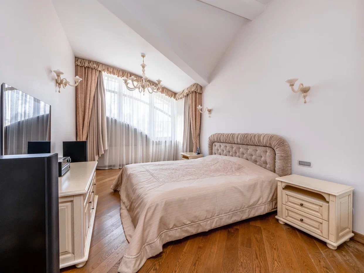 Внутри - высокие потолки 3,12 м., и дорогая мебель из Европы. Имеется 3 спальни, 4 с/у.