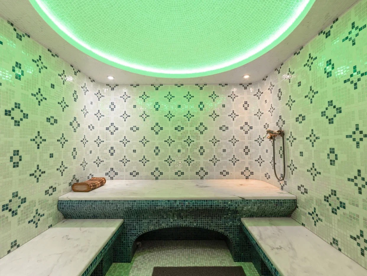 Имеется гараж на две больших машины, общей площадью 47,5 кв.м, также имеются помещения для персонала со своей кухней и санузлом.
