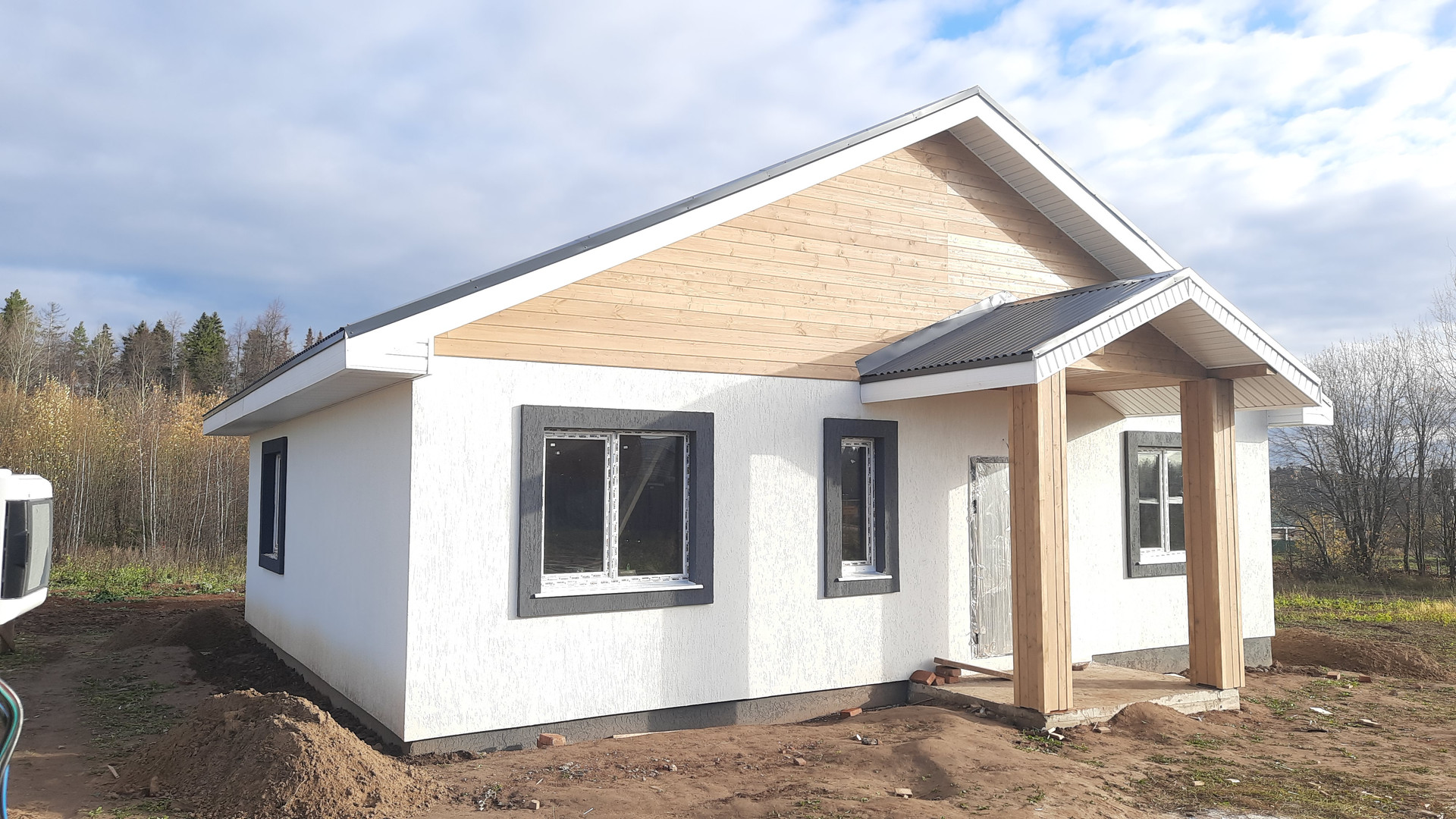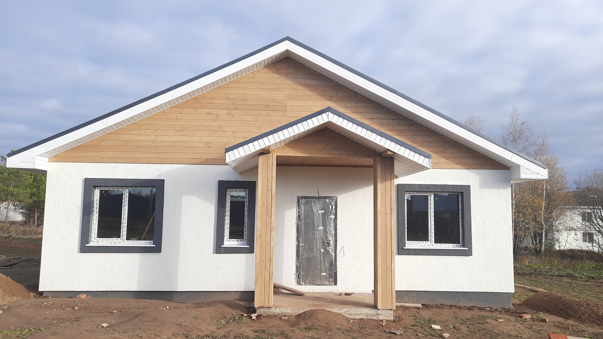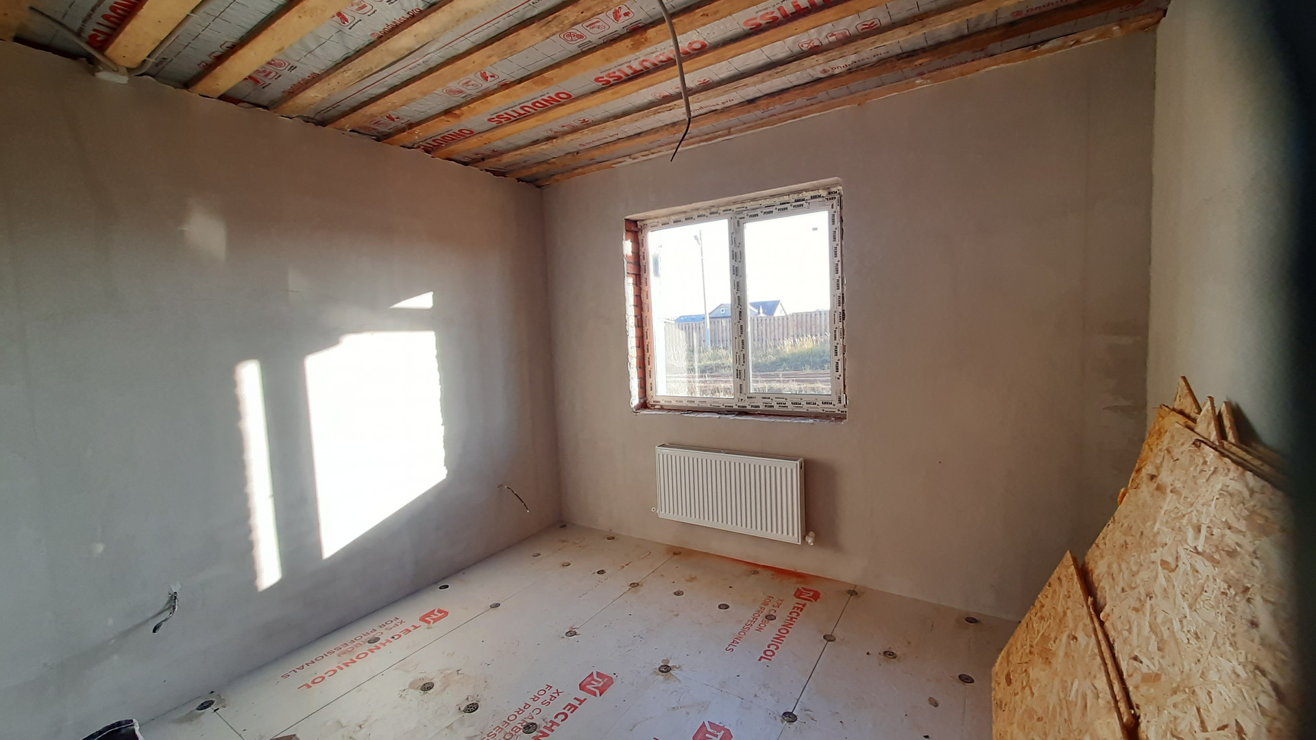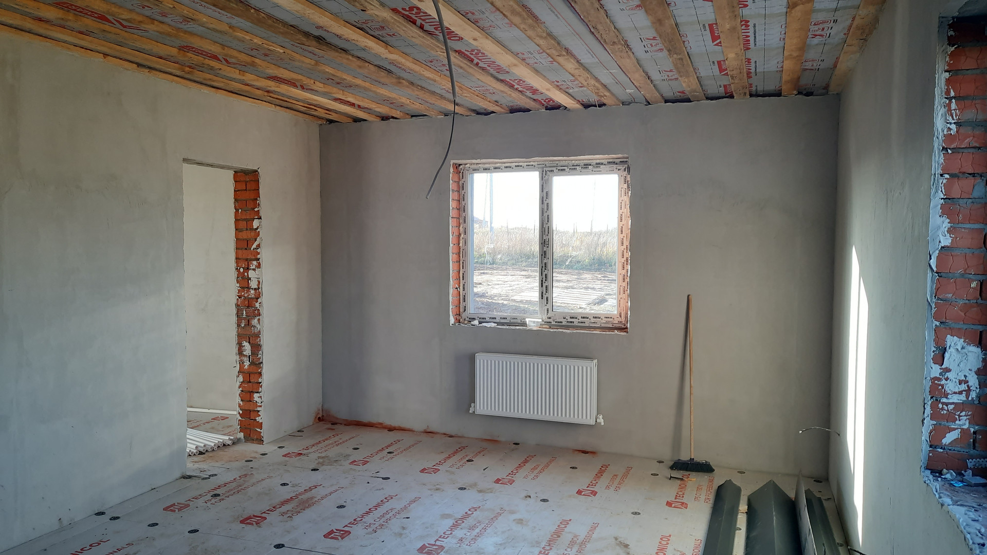 Предчистовая отделка включает в себя: штукатурку стен, пол цементно-песчанная стяжка 6 см., подшив потолка, смонтирована система отопления, электроснабжения, водоснабжения и канализация. Отопление газ