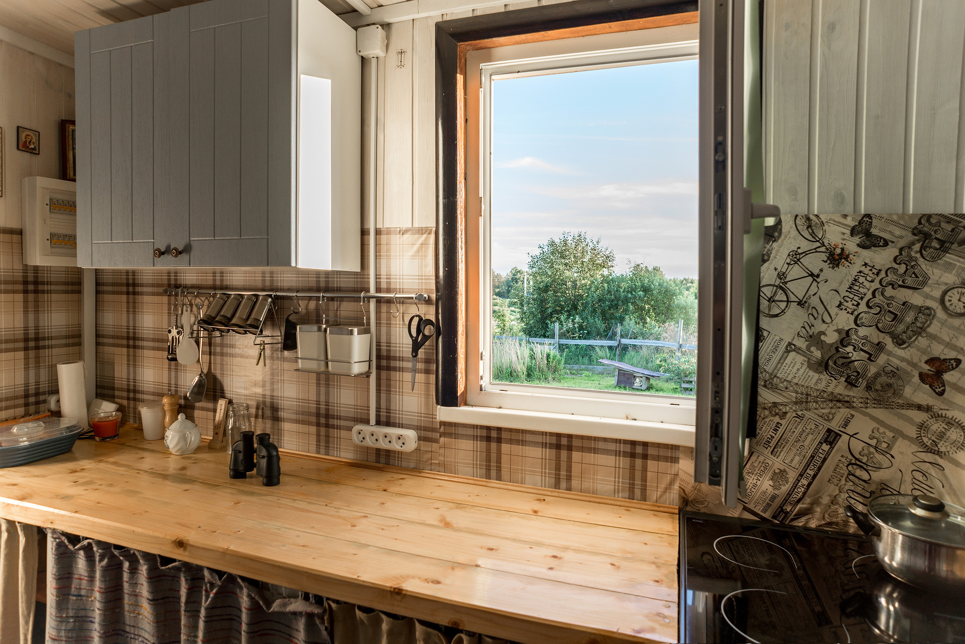 - Кухня: гарнитур ручной работы из массива, новая электрокерамическая увеличенная плита с духовкой, огромные отдельно стоящие холо