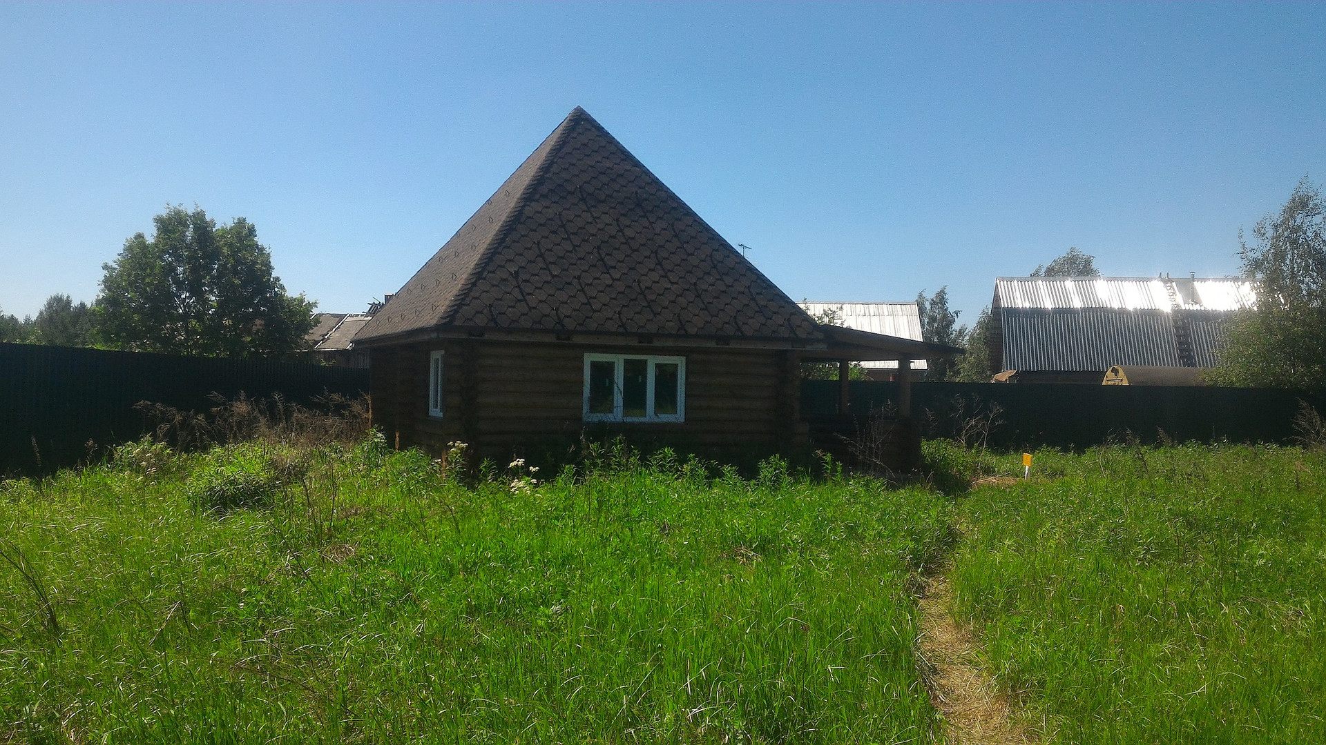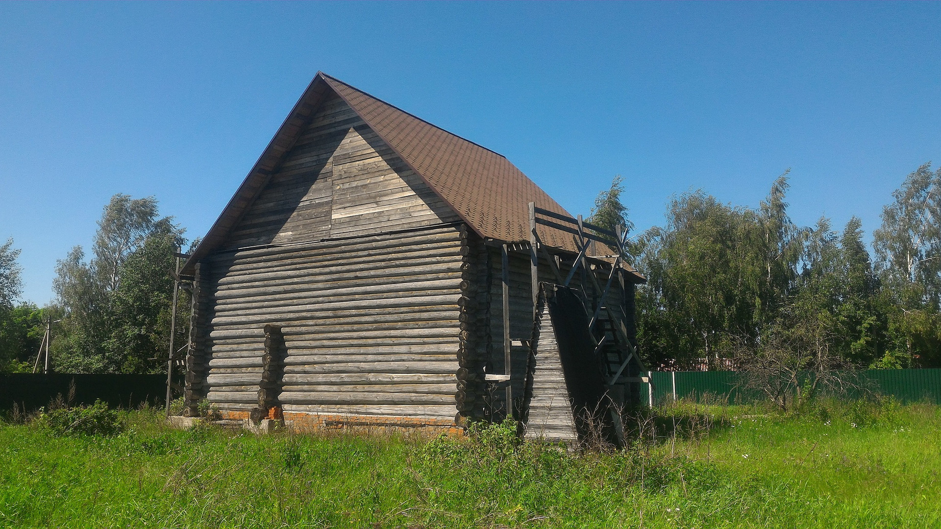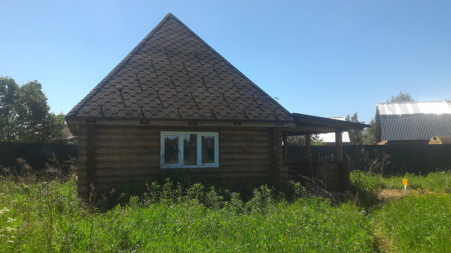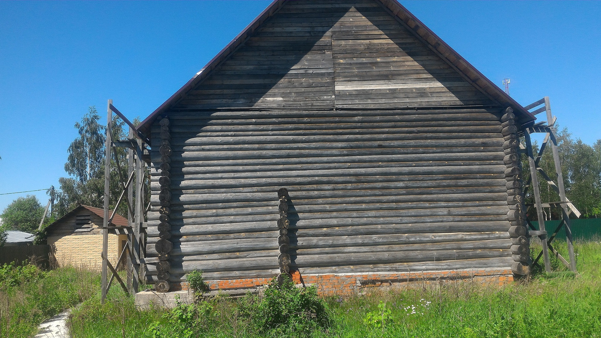 В д. Дядькино 33 км. от МКАД по Щелковскому ш. на уч. 15 сот ИЖС продается недостроенный дом 200 кв.м. Дом бревенчатый, из архангельского леса. Построен в 2019 г., отстоялся и готов к дальнейшему строительству. Цокольный этаж 2,5 метра. Кроме того на участке есть симпатичная баня и гараж. И к бане и дому подведены коммуникации (эл-во, водопровод, канализация).  По всему периметру участка установлен забор и профлиста. Забетонировна площадка под 3 автомобиля. Участок на краю деревни, Рядом лес. Дорога к участку заасфальтировна. Планируется подведение магистрального газопровода. Схема газификации уже согласована.