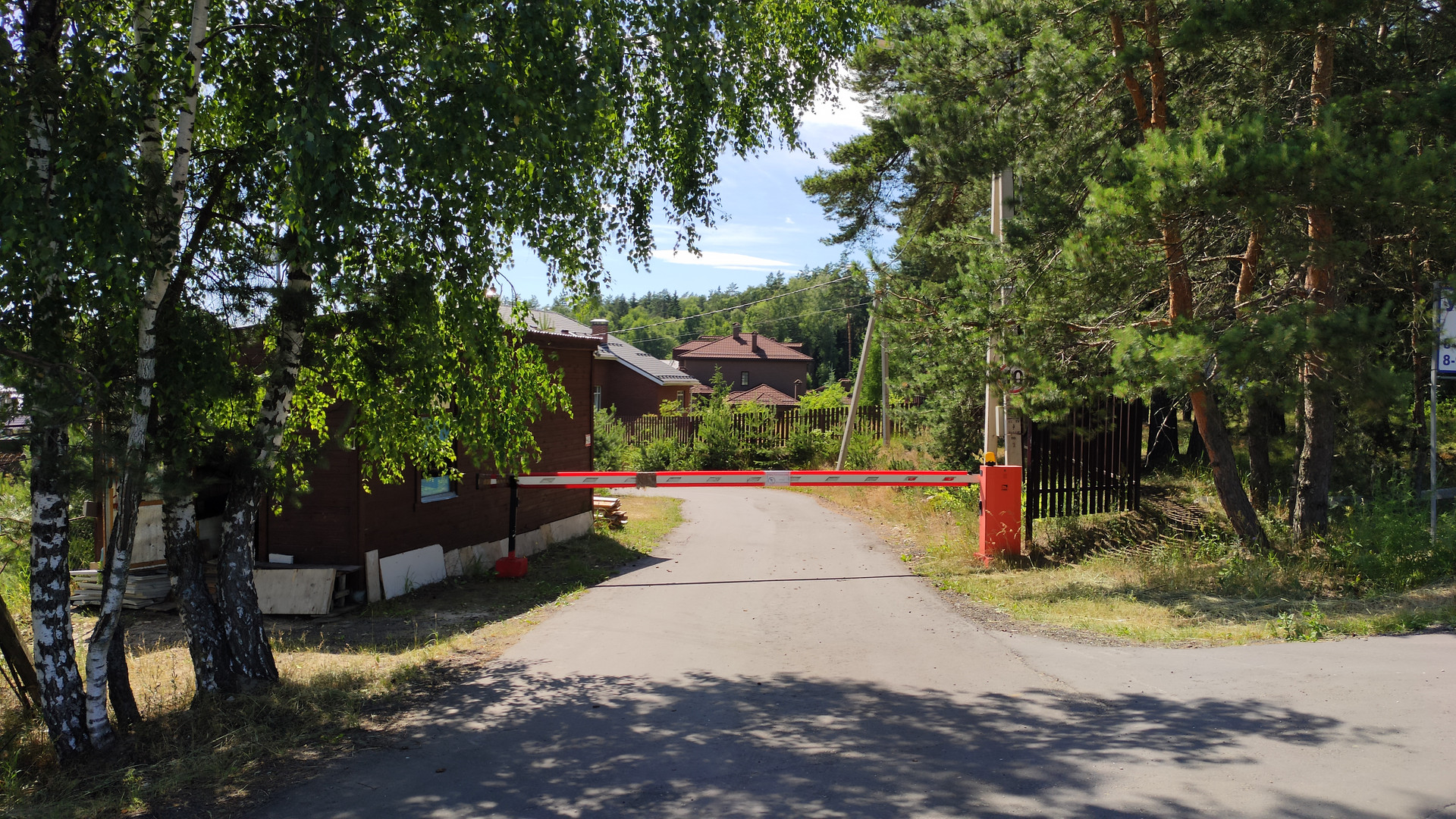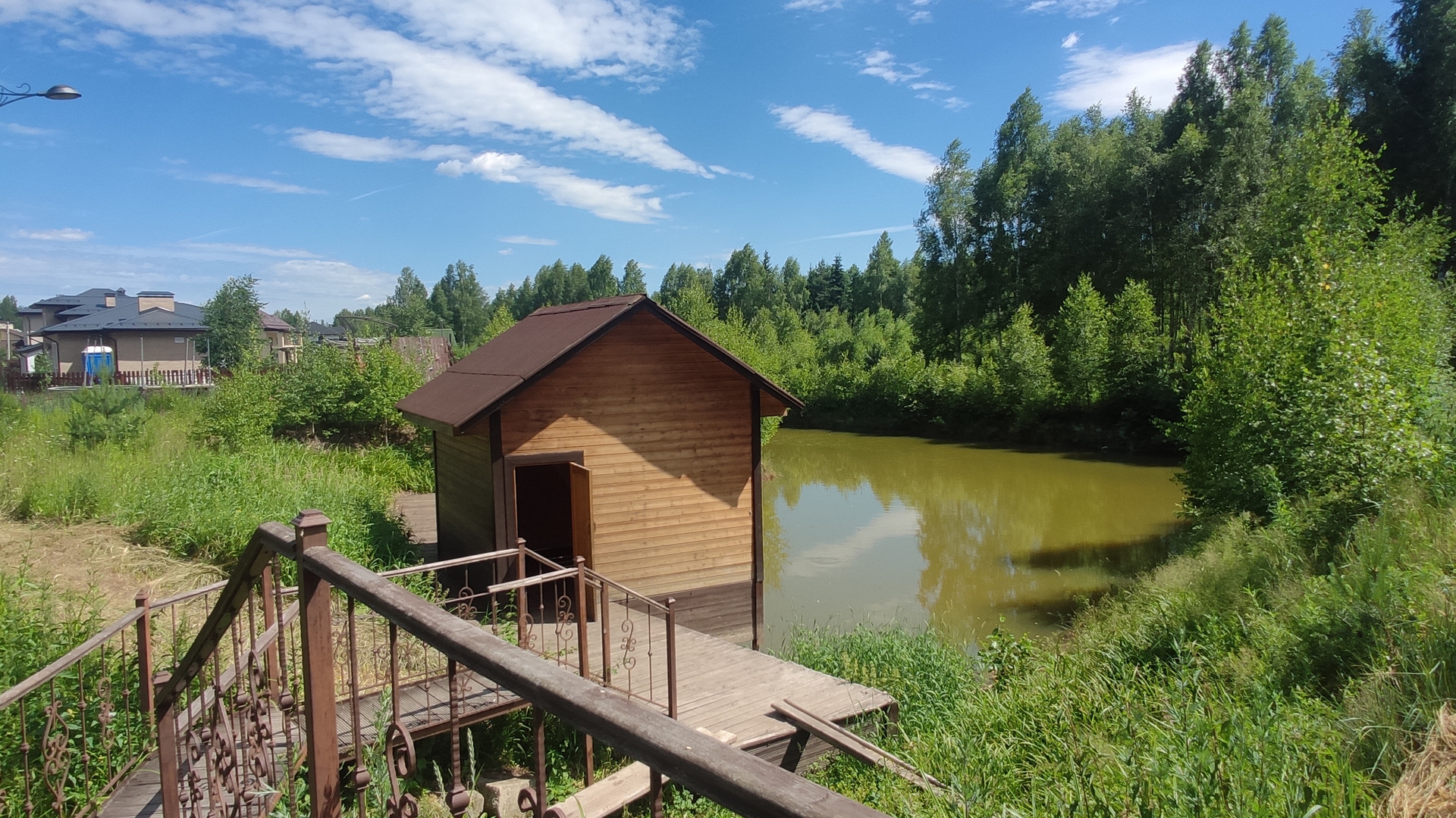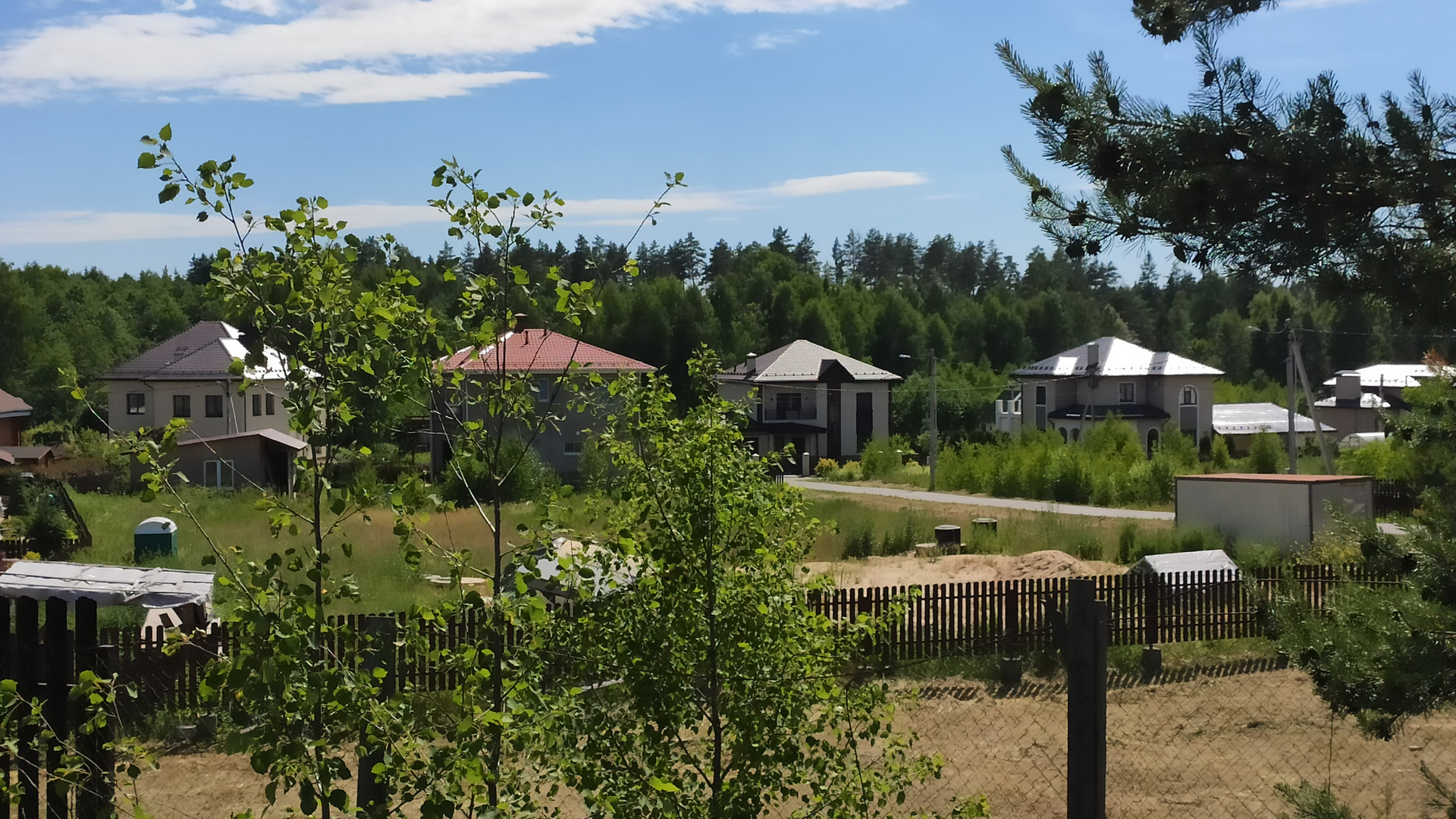 Жилой охраняемый поселок примерно 40 домов, огороженная территория, дороги асфальтированы, широкие зеленые газоны. Поселок примыкает к лесному массиву, на территории есть пруд с местами для ловли рыбы.