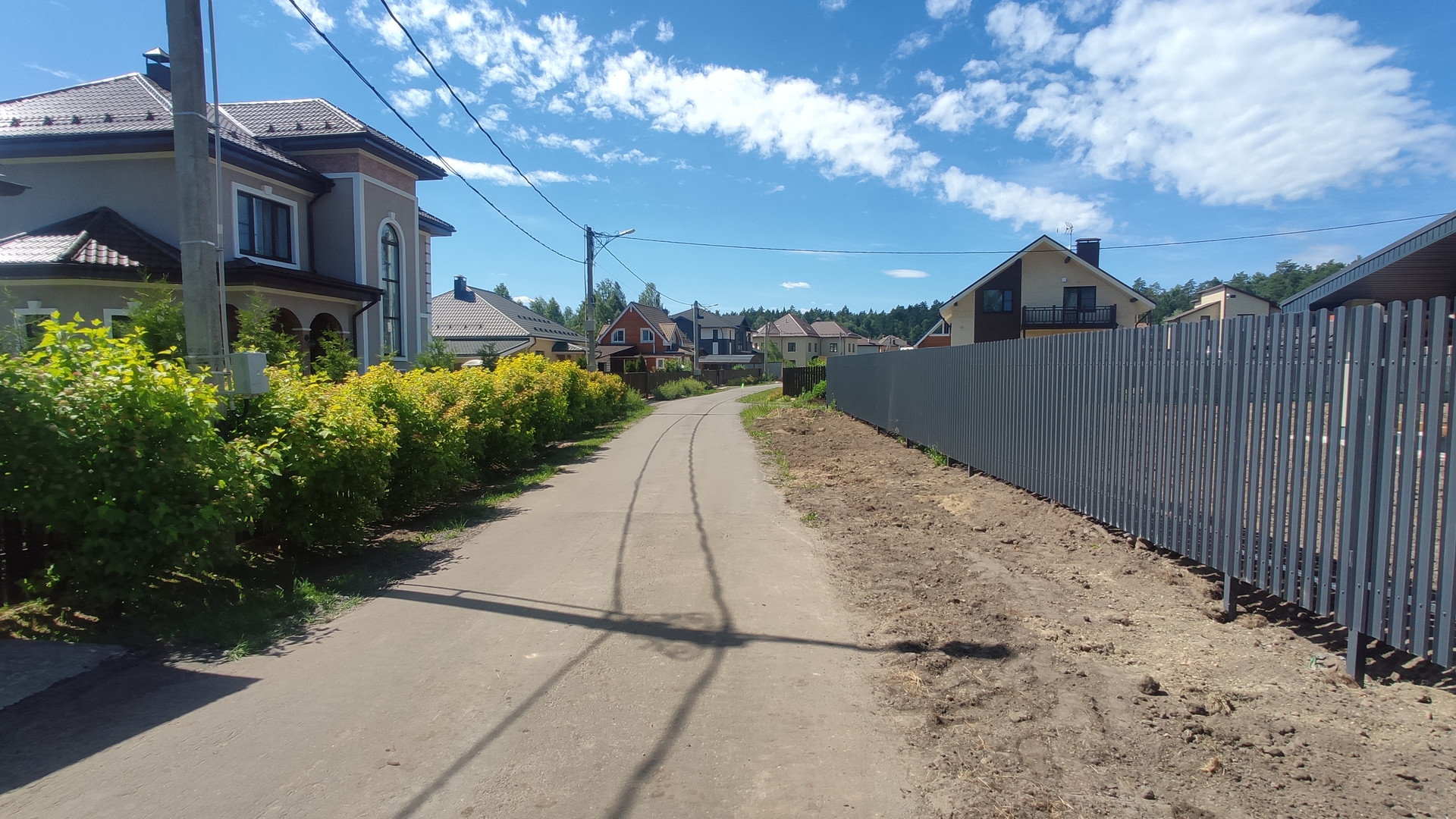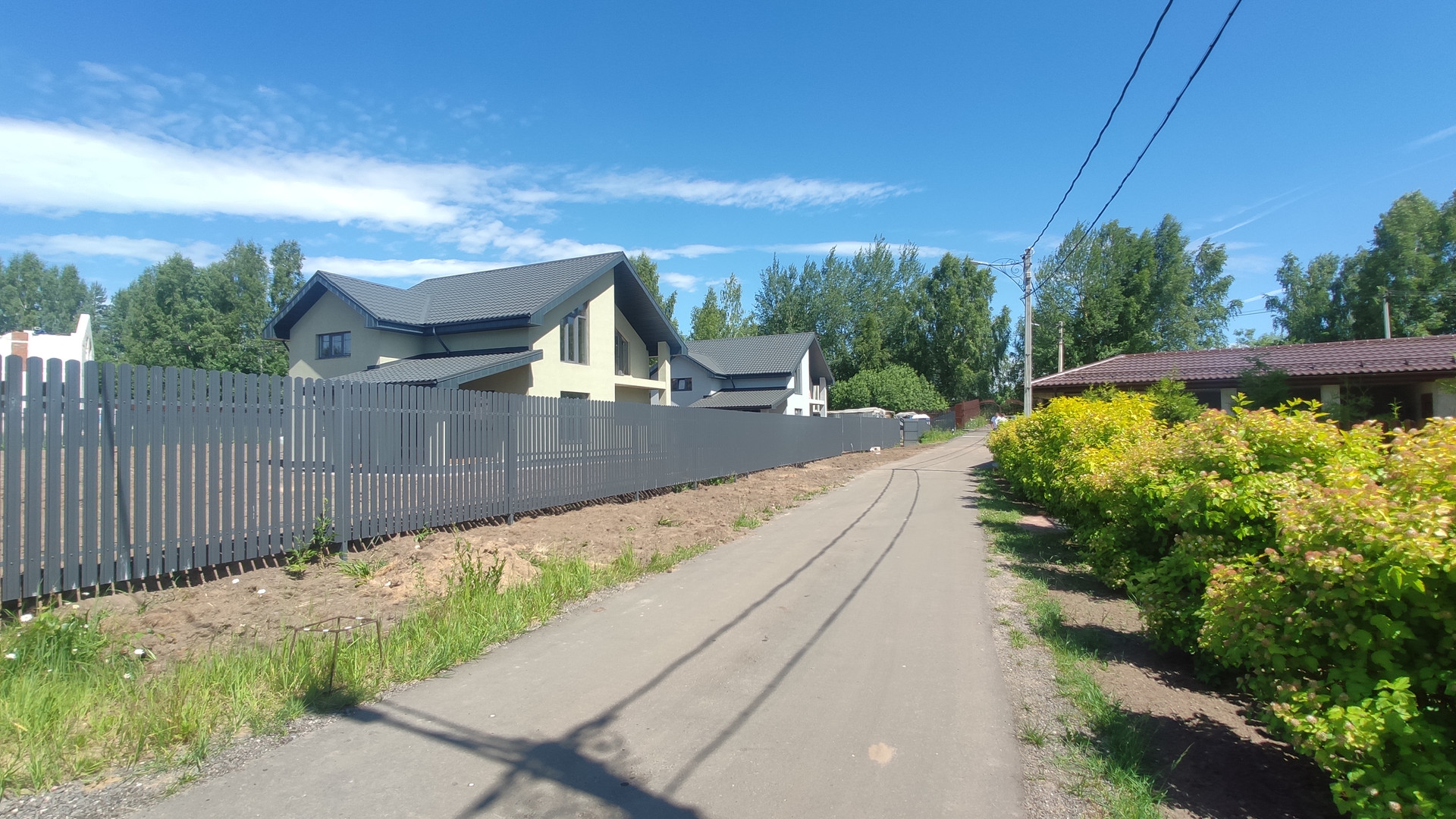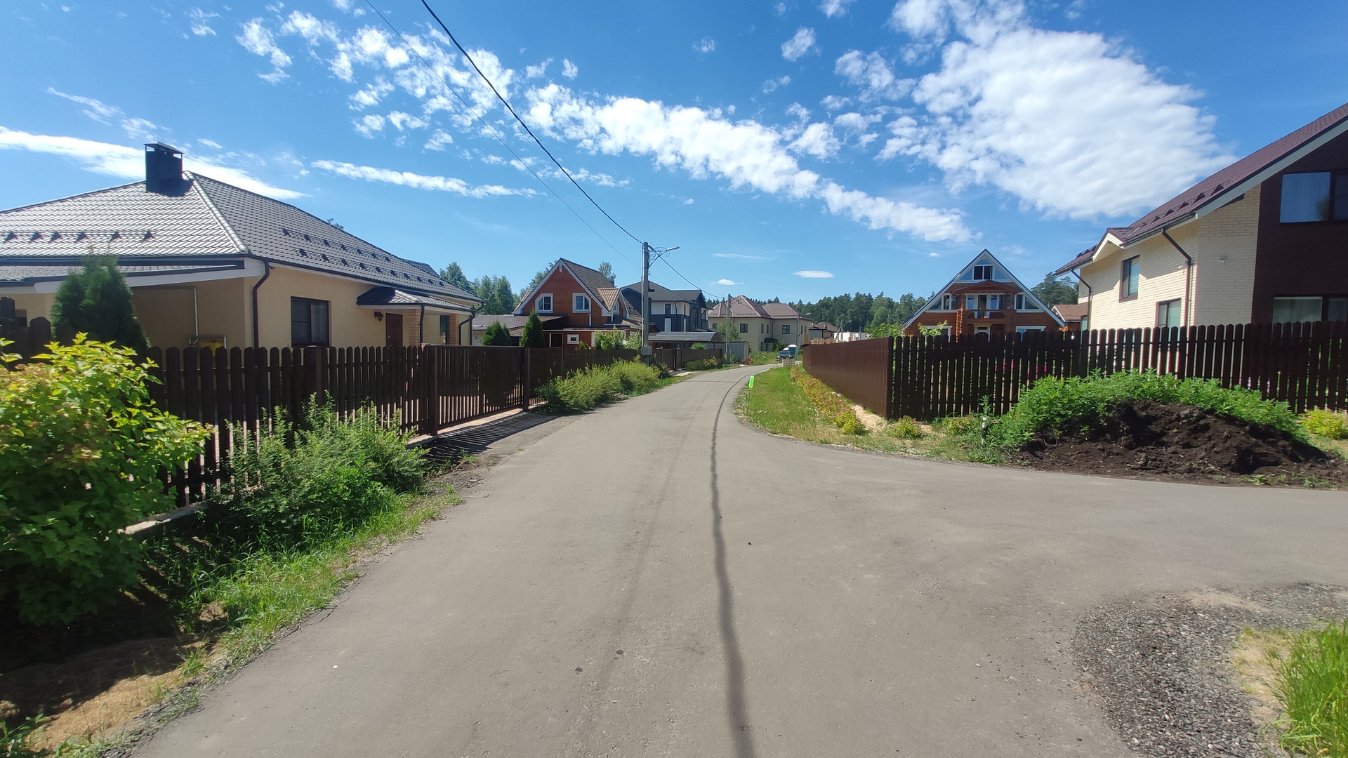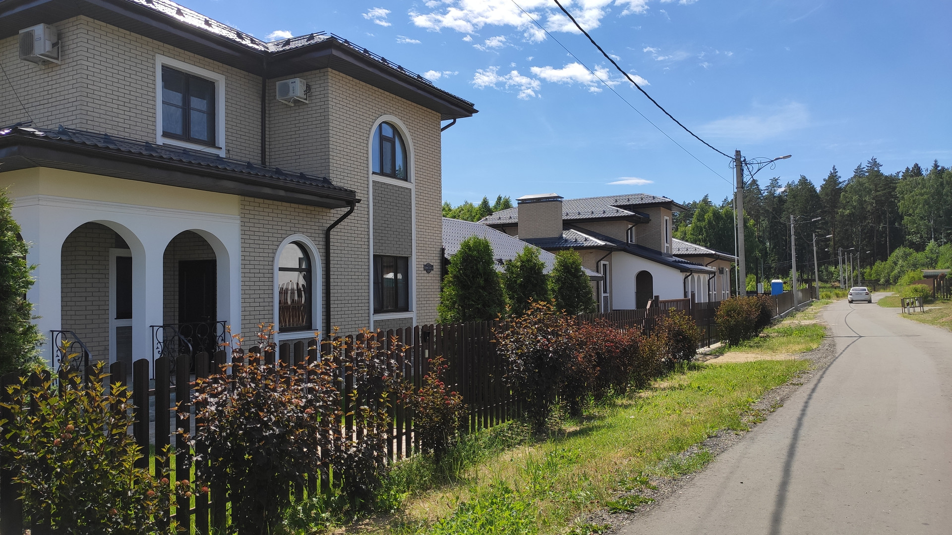 Жилой охраняемый поселок примерно 40 домов, огороженная территория, дороги асфальтированы, широкие зеленые газоны. Поселок примыкает к лесному массиву, на территории есть пруд с местами для ловли рыбы.