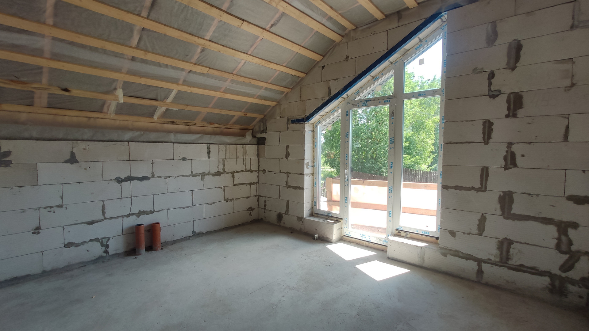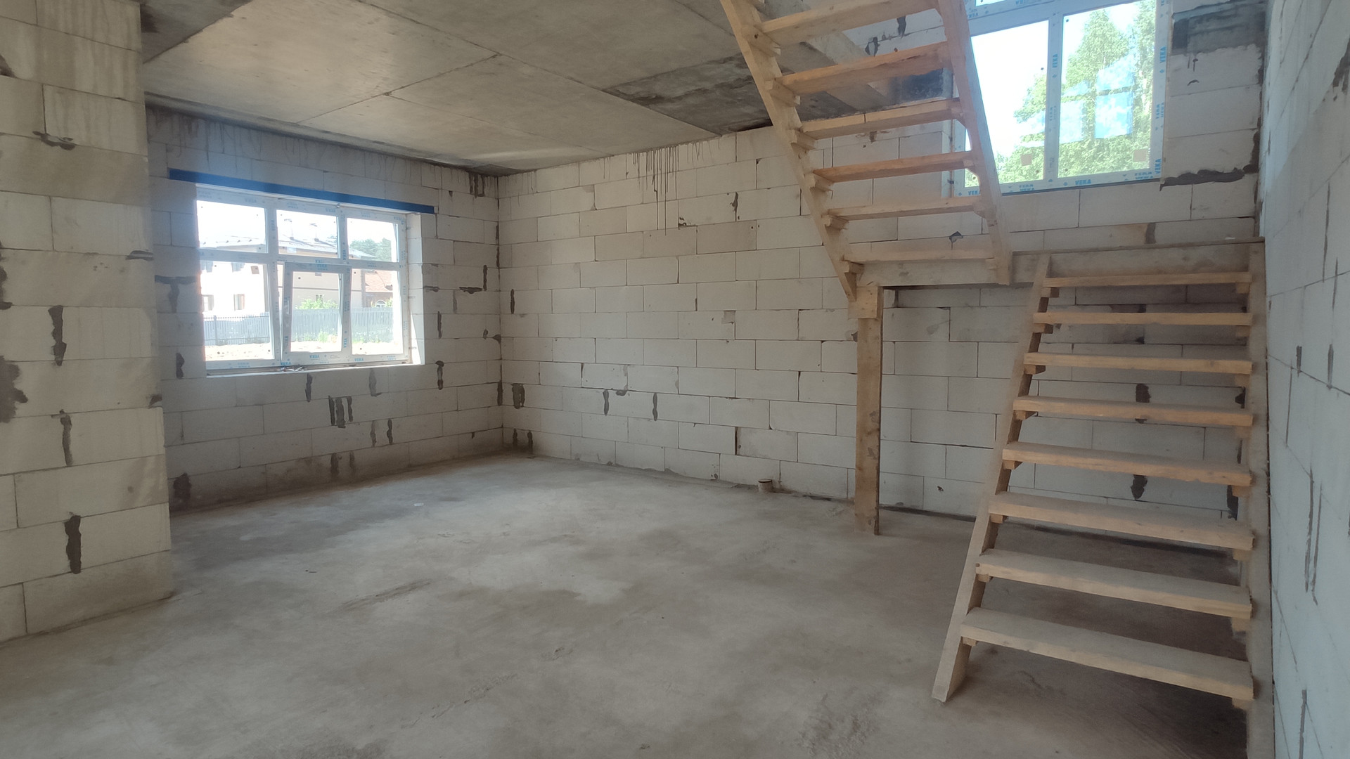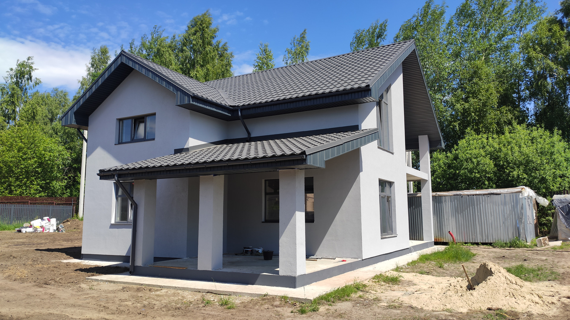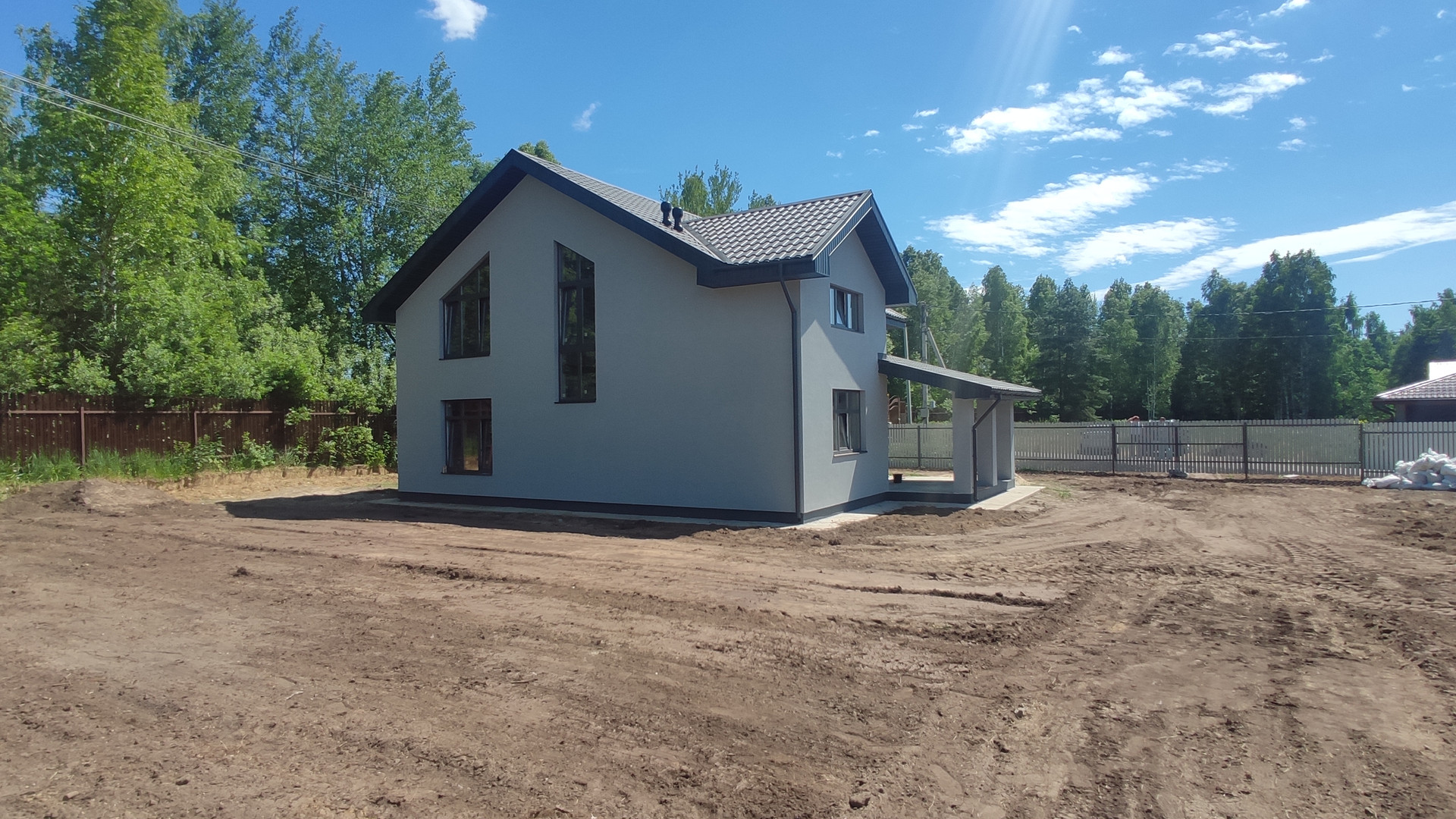 Фундамент монолитная жб плита, перекрытия монолитные жб, лестница деревянная строительная, крыша - металлочерепица утеплена базальтовым утеплителем, смонтирована водосточная система, качественные окна пвх.