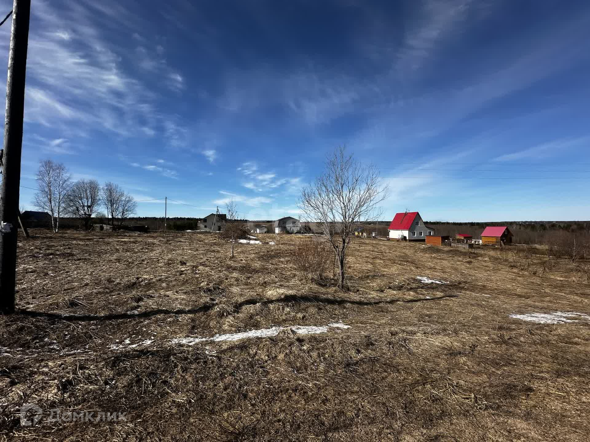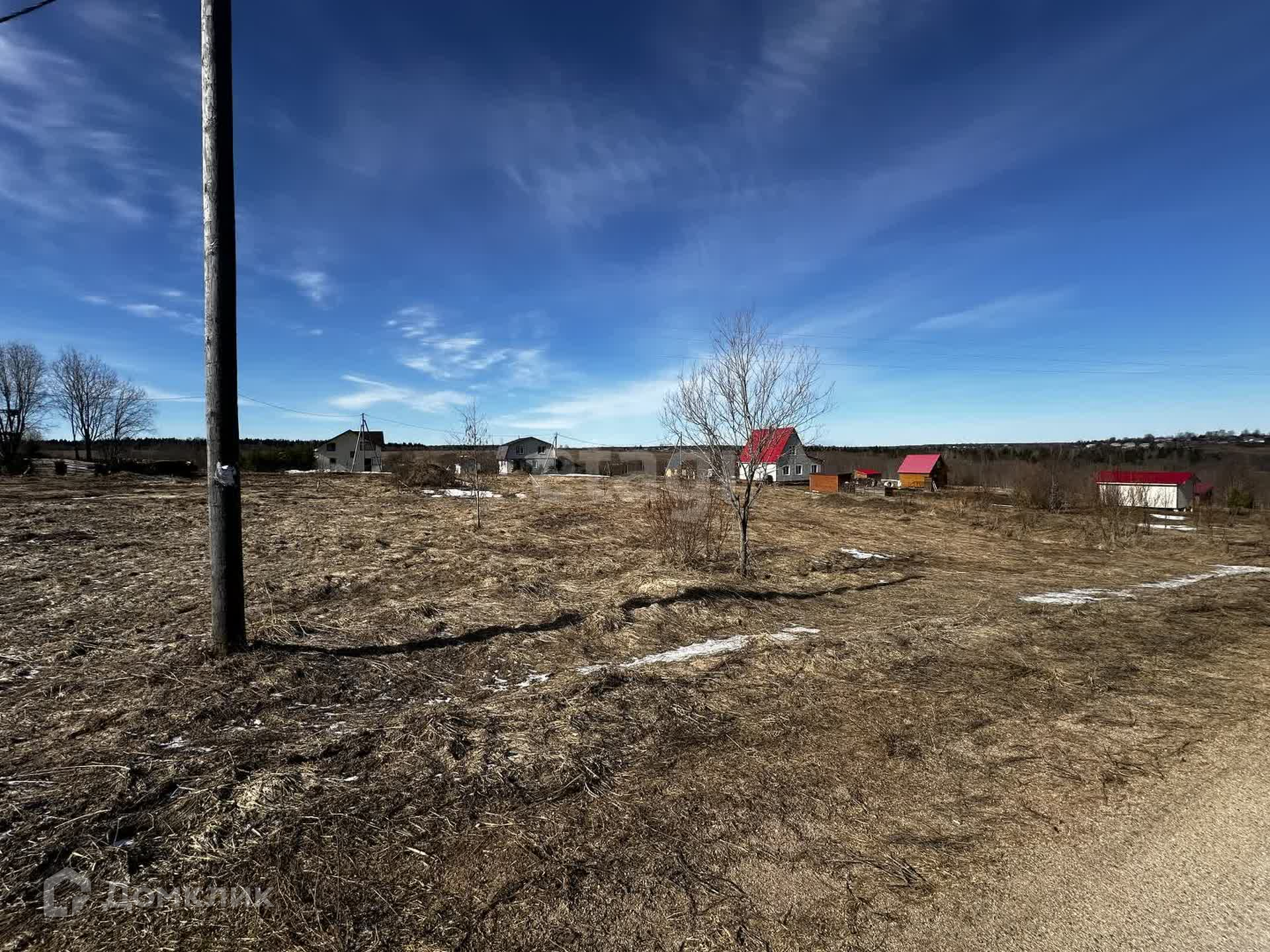 Сам участок расположен на возвышенности, прямоугольной формы. Произведена расчистка от деревьев и кустов, сделана подсыпка ПГС для заезда на участок. Свой электрический столб с счетчиком. Ещё одним большим плюсом является центральное водоснабжение из скважины во всей деревне. Вода чистая и очень вкусная.