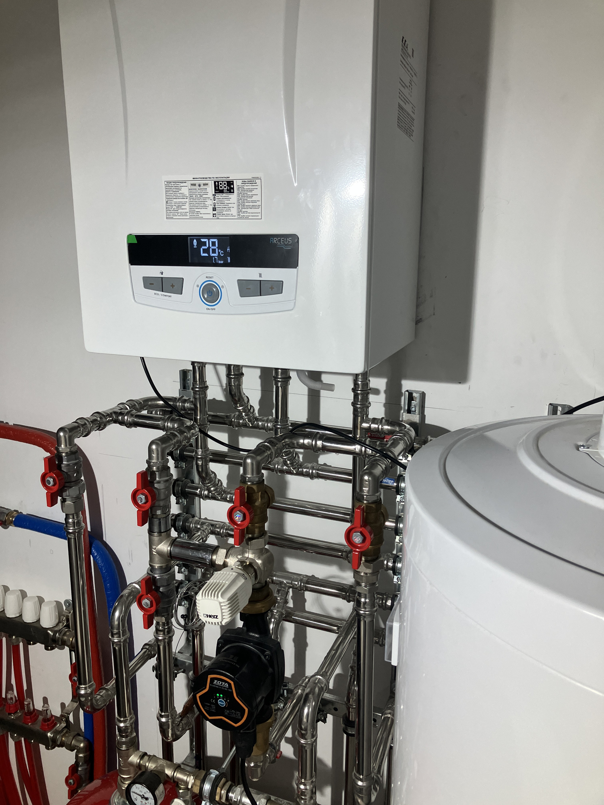 181,9 кв.м. из газосиликатного блока BONOLIT PROJECTS D400 на монолитном фундаменте с железобетонными перекрытиями, в доме два этажа, остекление- Rehau с ламинацией, кровля- мягкая черепица Технониколь.  В доме разведены и запущены инженерные системы- электричество (380/15 Квт), на первом этаже теплый пол и радиаторное отопление, на в