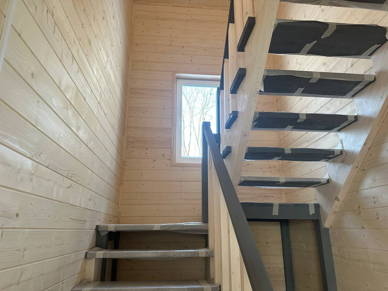 — Смонтирован натяжные потолки на первом этаже;