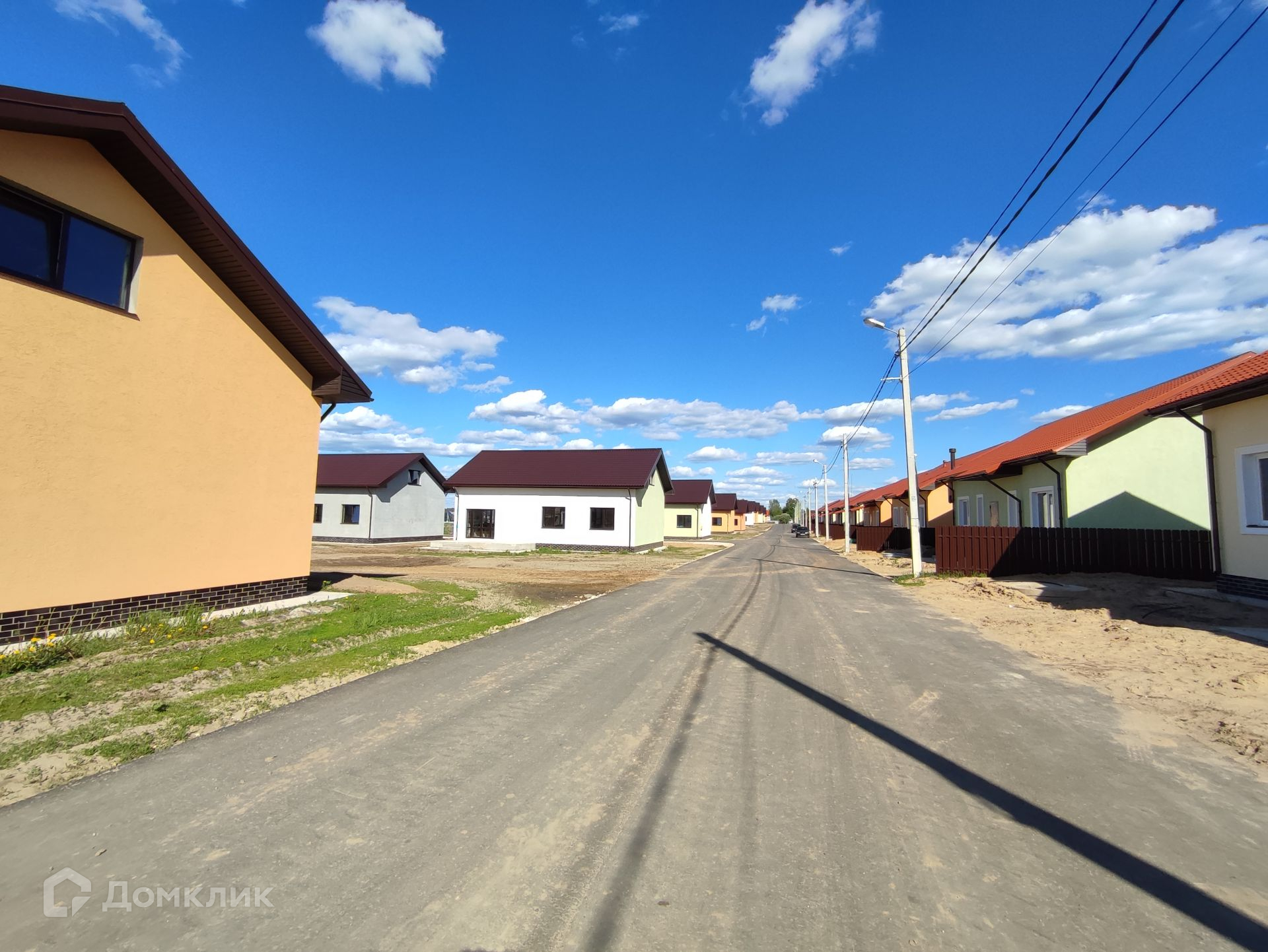 К поселку и к дому ведет отличная асфальтированная дорога. Дорога центральная - 7 метров, между домами 4 метра.