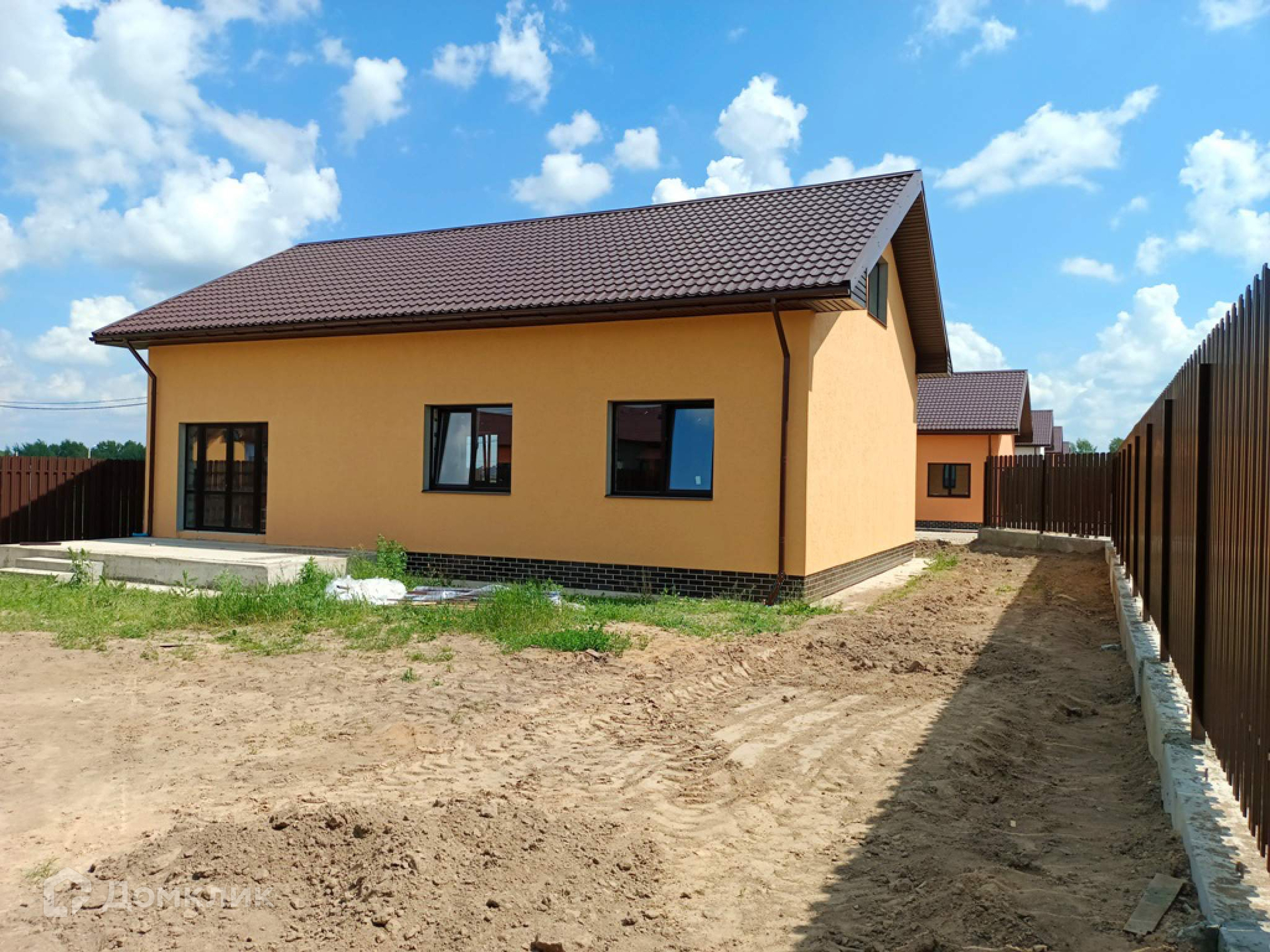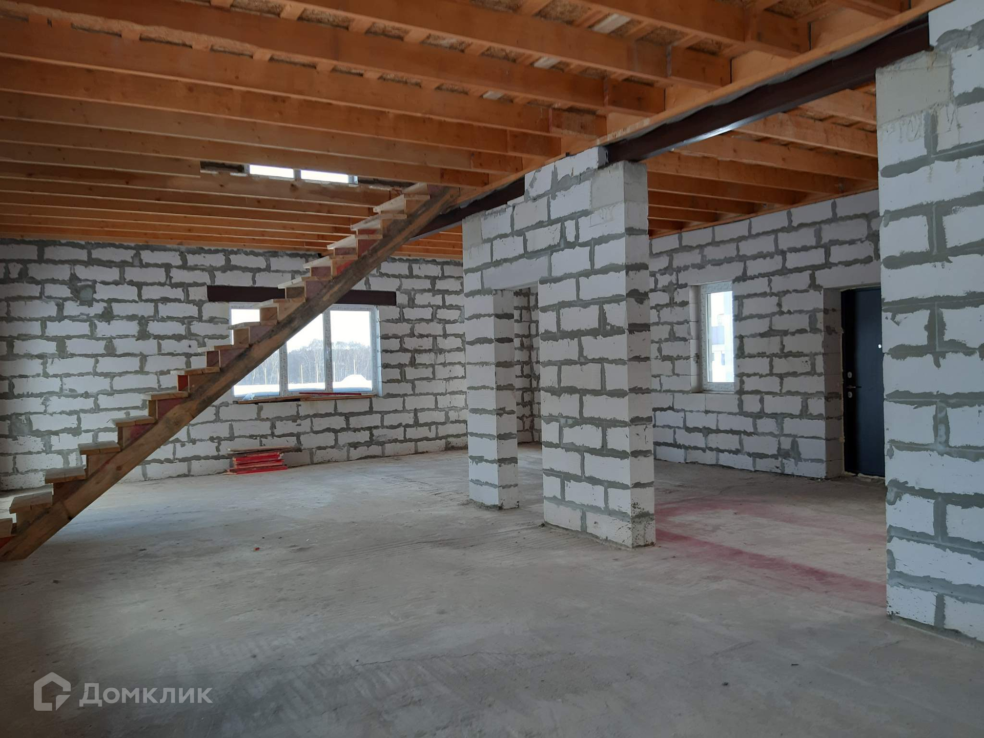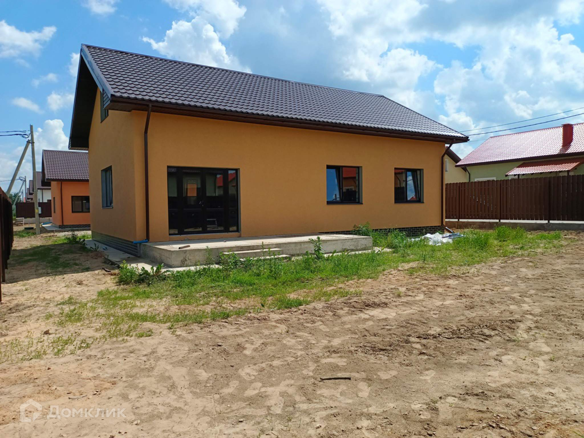 Теплый дом для круглогодичного проживания из газоблоков. Выполнена внешняя отделка фасада (штукатурка/покраска), отмостка, крыльцо со ступенями и навесом, утеплен цоколь, выполнена площадка террасы 18кв. м . Электричество 15кВ (3 фазы) и магистральный газ заведены на  участок.