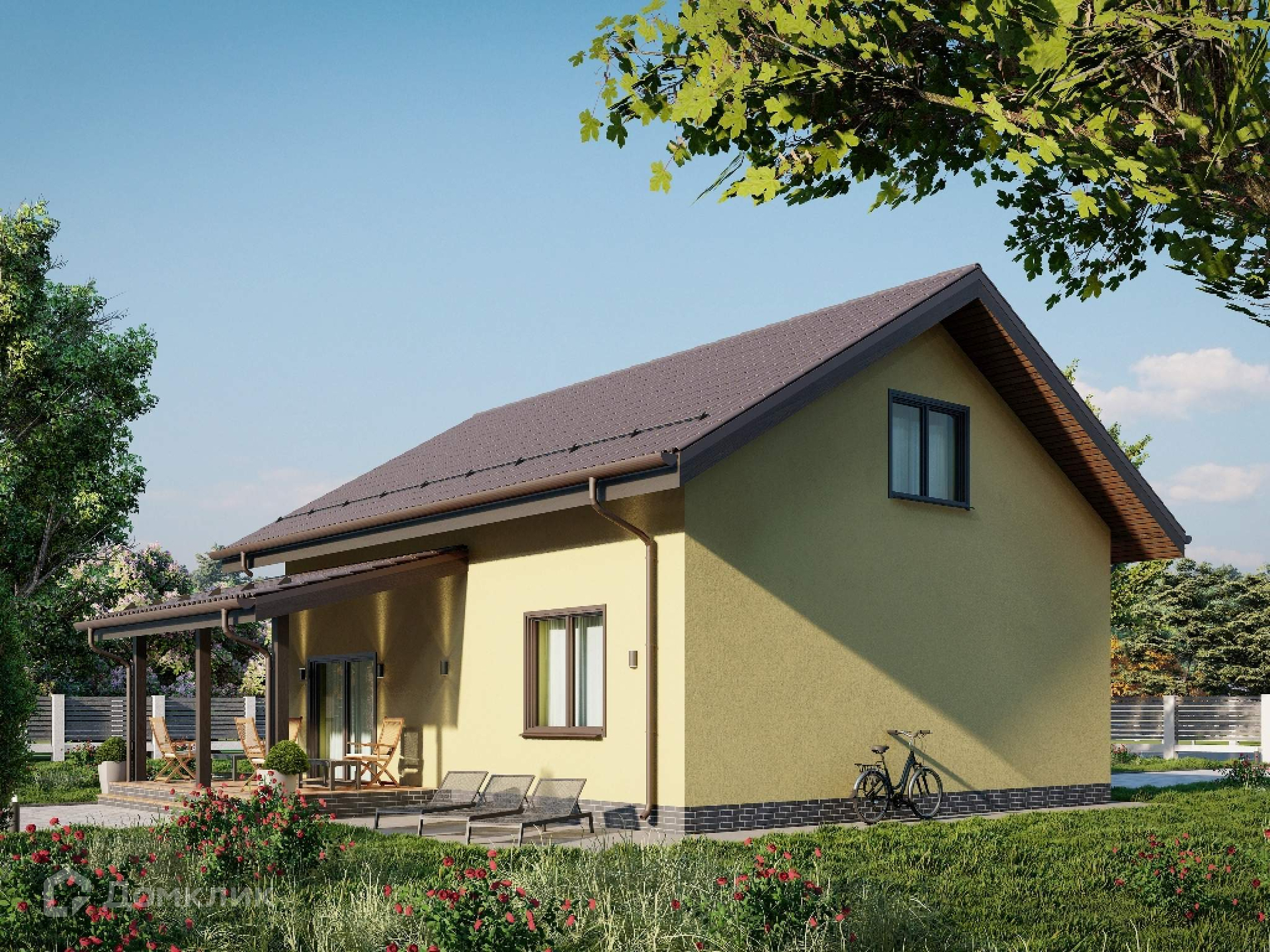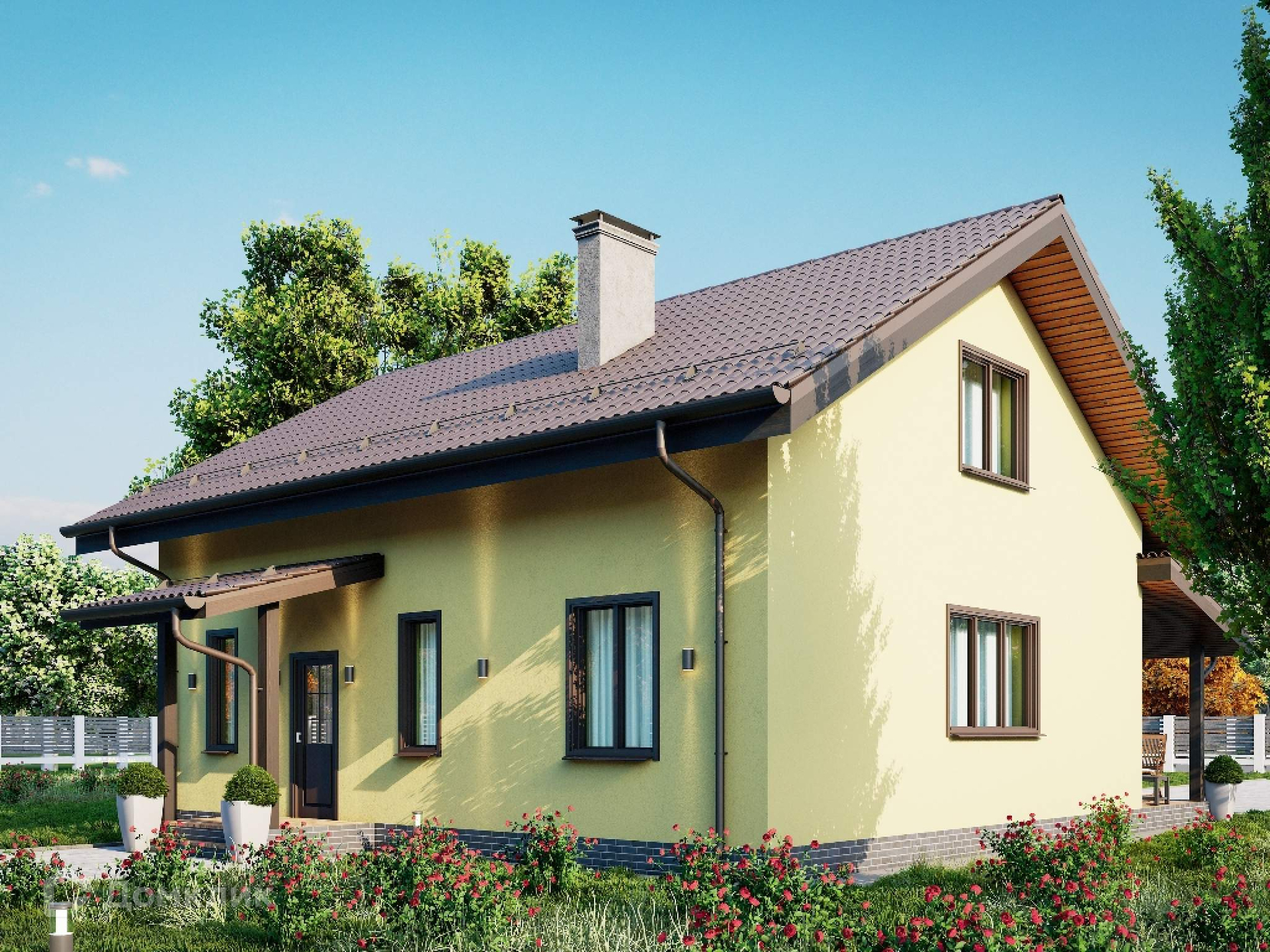 Индивидуальную парковку на 2 машины можно вымостить перед домом или сделать крытую с навесом с торца коттеджа, места достаточно.