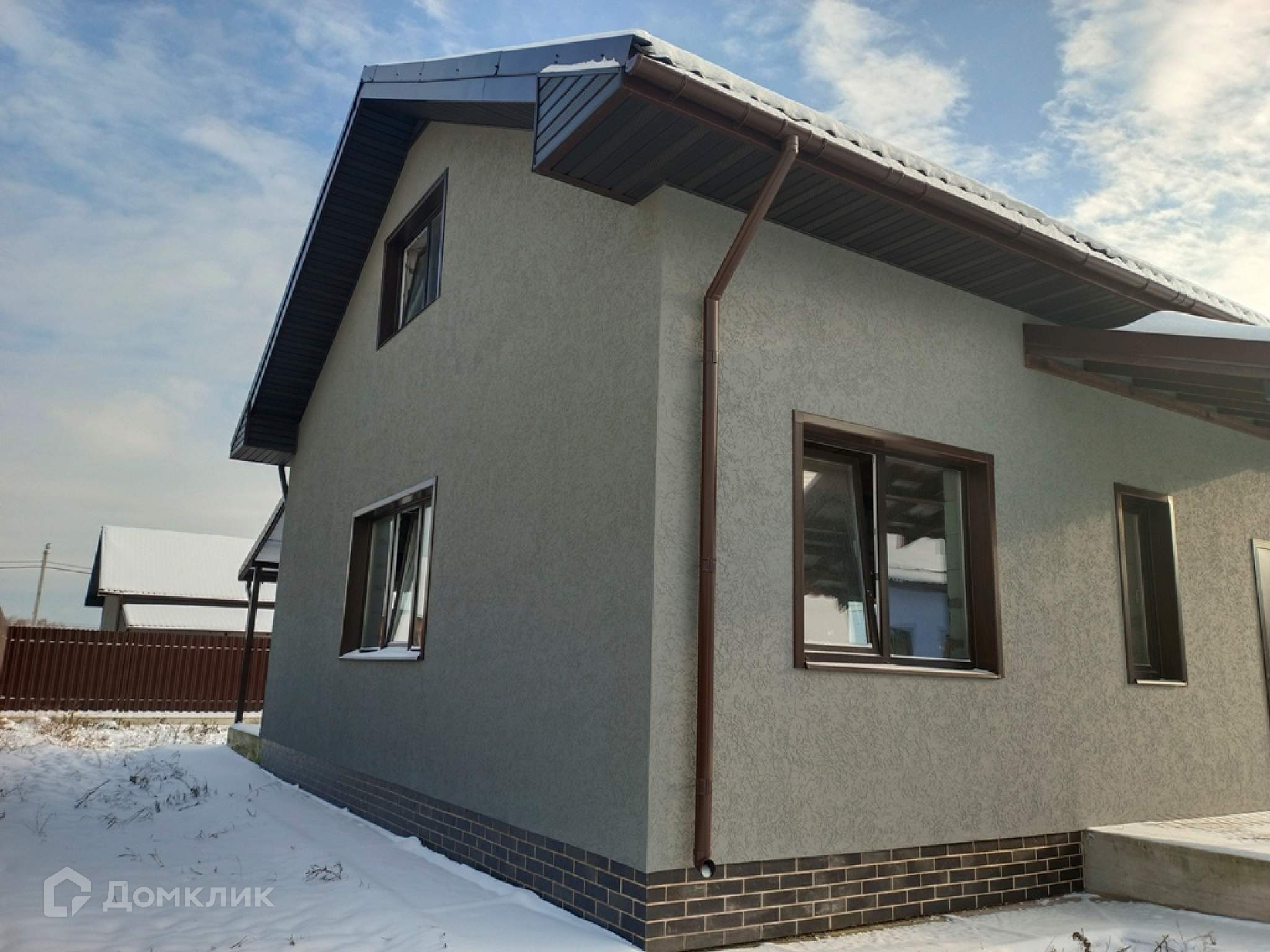 Теплый просторный коттедж построен из газоблока. Окна и панорамная дверь на террасу - двухкамерный стеклопакет. Выполнена отмостка, утеплен цоколь. Установлена водосточная система, снегозадержатели, навес над крыльцом.