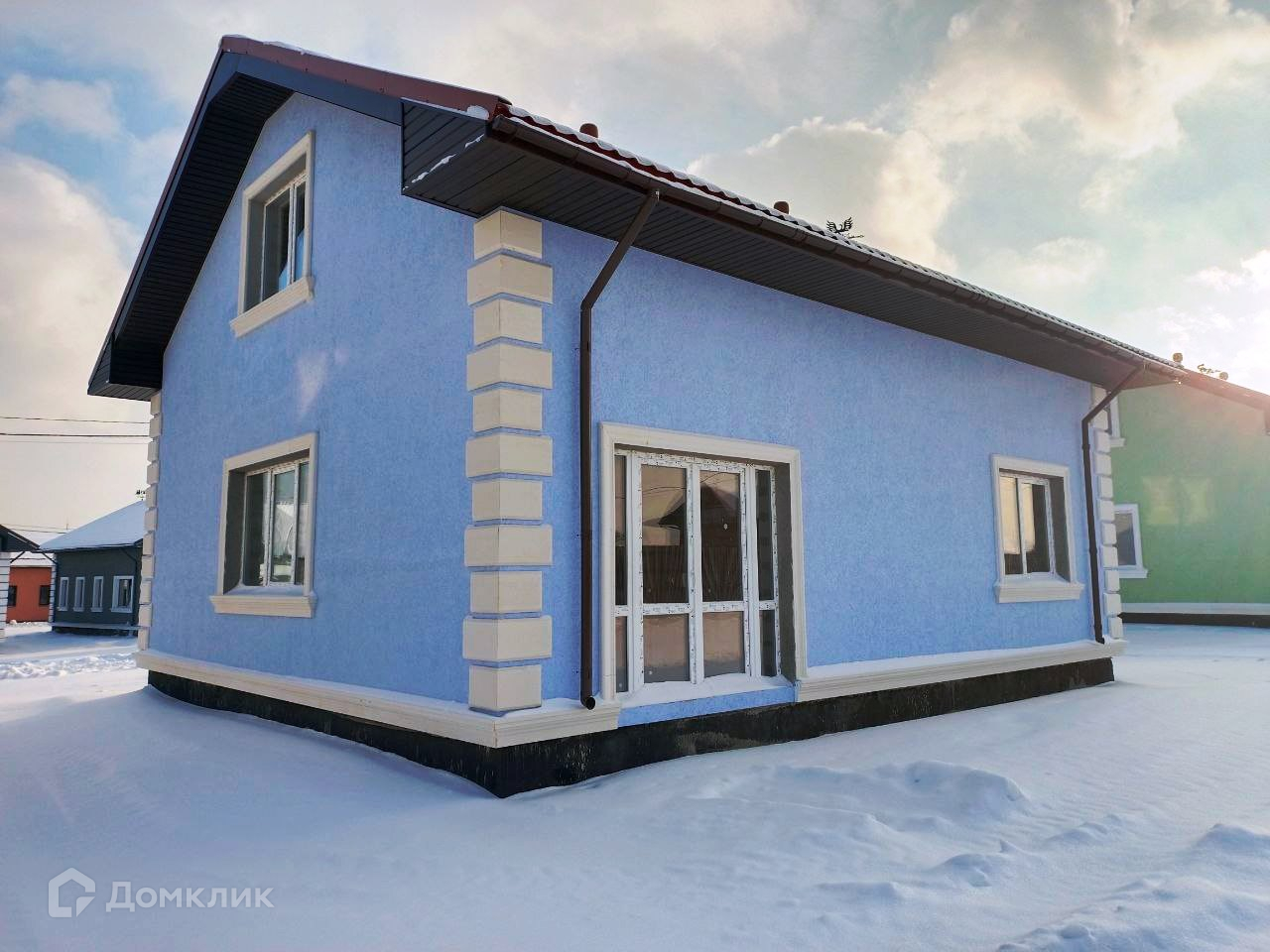- Фасад: Штукатурка, покраска, Цоколь утеплен и облицован термопанелями, выполнена отмостка