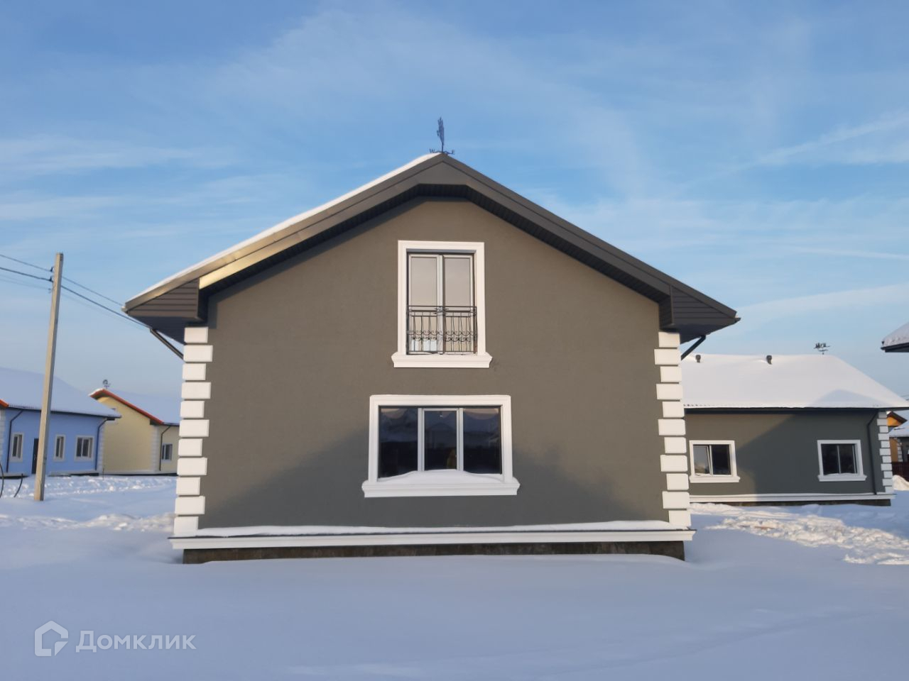 - Фасад: Штукатурка, покраска, Цоколь утеплен и облицован термопанелями, выполнена отмостка.