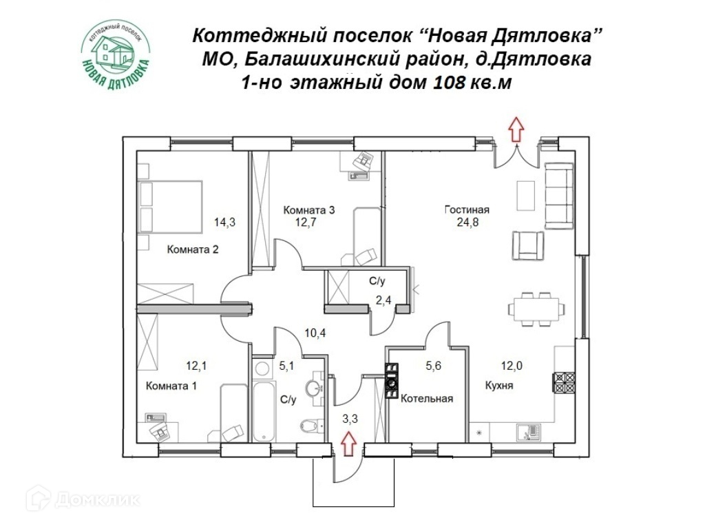Просторная кухня-гостиная 40 кв.м с панорамной дверью во двор, 3 спальни, ванная, с/у, бойлерная.